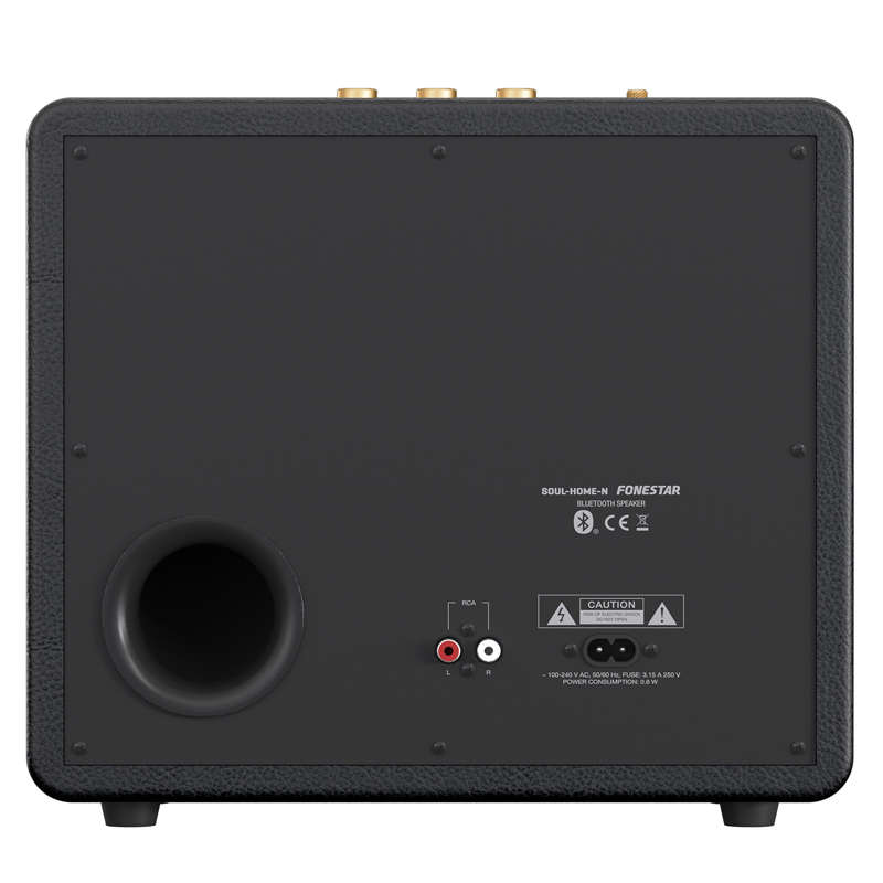 Konektivita: Nejnovější Bluetooth 5.3, funkce TWS (TRUE WIRELESS STEREO) pro bezdrátové spárování dvou reproduktorů do stereo sestavy, AUX (3,5 mm jack) a 2x RCA.