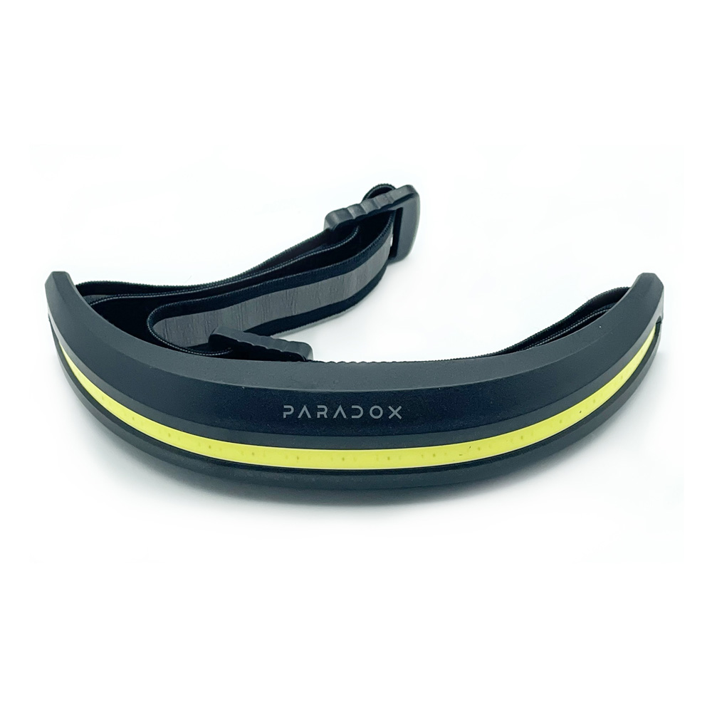 🎁 Elegantní kompaktní čelovka s logem Paradox a nabíjením přes USB-C. Čelovka má režim bílého světla pro běžné svícení a režim červeného světla pro výstražné upozornění.