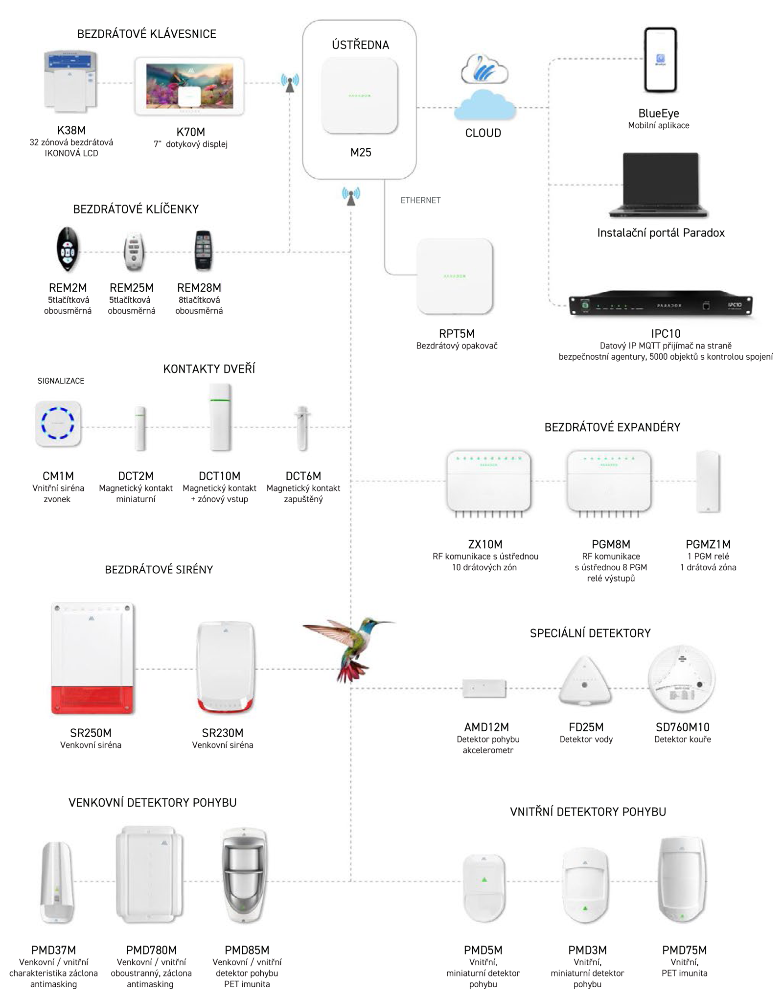 Paradox M25 je kompaktní zabezpečovací ústředna nové generace, která byla navržena s ohledem na potřeby montážních a instalačních firem. Kombinuje moderní bezdrátovou technologii, jednoduchou instalaci a vysokou úroveň zabezpečení v jednom řešení. Ústředna M25 je univerzálním řešením pro zabezpečení rezidenčních i komerčních prostor všech velikostí – od bytů až po rozsáhlé firemní objekty.