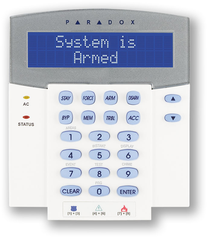 LCD klávesnice s dvouřádkovým modrým displejem určená pro ovládání a zobrazování informací o stavu ústředny DIGIPLEX. Stav zón a systémů se zobrazuje rolováním na displeji. Pomocí bočních tlačítek lze na LCD listovat v popisech a stavových hláškách. Pomocí LCD klávesnice lze prohlížet historii událostí ústředny.