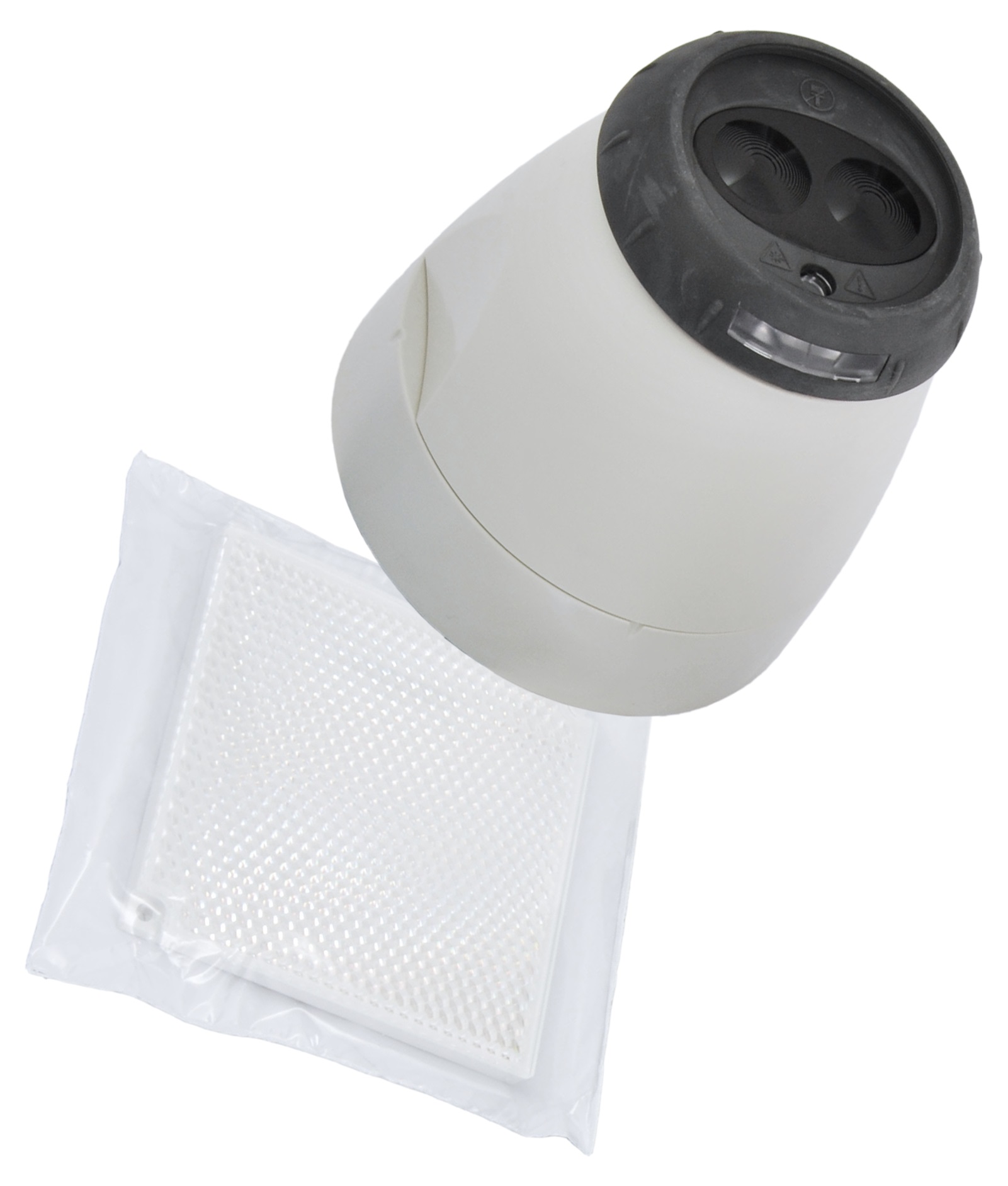 Přídavný detektor (hlavice) k lineárnímu IR hlásiči FR5000, k řídící jednotce lze doplnit pouze jeden přídavný detektor (celkem 2 hlavice), dosah 8-50m, (ev. 100m v případě přídavných odrazných desek 1807-001)