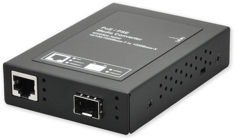 Digitální převodník SM/ MM vlákna na SFP modul, PoE napájení. Umožňuje rozšířit síť Ethernet na vzdálenosti výrazně větší než 100 m, odstraňuje problém rušení, poskytuje galvanické oddělení.