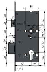 Vchodový zadlabací elektromechanický reverzní zámek bez akustické signalizace se třemi mikrospínači-zarážka, závora a klika pro všechny interiérové i venkovní dveře s uzamčením bez klíčů. Bez panikové funkce-elektrické ovládání obou klik. S funkcí samozamykání, nejužší 15 mm zámek na trhu.