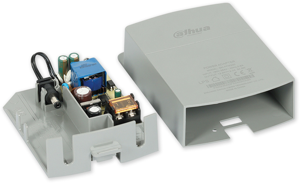 Spínaný zdroj v plastovém krytu s napájecím konektorem 5.5 x 2.1 mm, výstupní napětí 12 VDC/2 A, ochrana proti zkratu a přetížení, vysoký teplotní rozsah, prostor k umístění video balun kamer, vhodný pro montáž na stěnu.