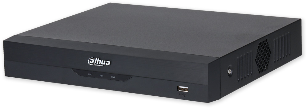 (podrobnosti o rozlišení) pro 4 kamery nebo 4 + 2 IP kamery. HDMI/VGA výstup na lokální monitor, audio, RS485, ovládání USB myší. OSD menu kamer po koaxiálním kabelu. Pokročilé inteligentní videoanalýzy obrazu (AI - umělá inteligence + IVS pravidla, střežení perimetru, klasifikace objektů osoba/vozidlo, detekce a rozpoznání tváří). Snadná instalace, přístup přes webové prohlížeče, Smart PSS software a mobilní aplikaci DMSS.