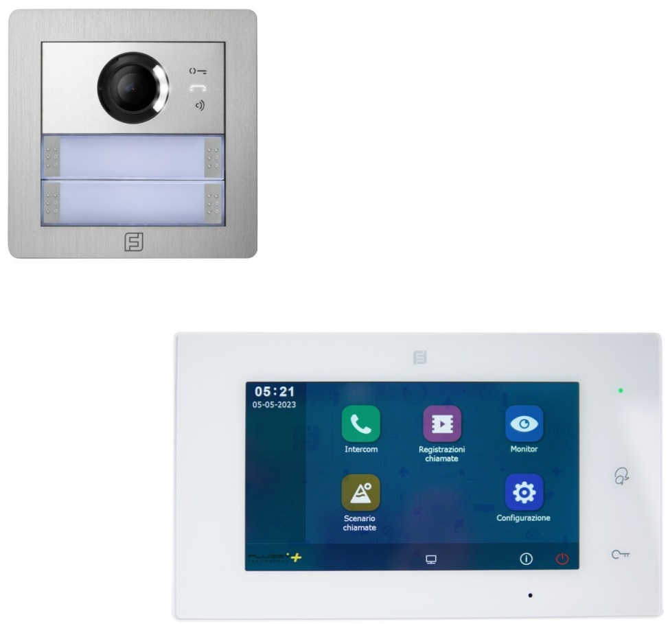 Kompetní 2-BUS sada videotelefonu pro 1-4 uživatele, aplikace VDP Connect pro spojení s chytrými telefony (iOS/Android). Obsahuje: kompletní dveřní stanici v designu ALBA pro zápustnou montáž s 1/2 tlačítky, napájecí zdroj a 7" videotelefon. Pro přenos na mobilní aplkaci nutné připojení k Internetu pomocí WiFi. Nekompatibilní se systémem DUO.