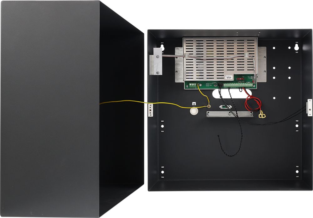Pomocný spínaný zdroj v plechovém boxu s LED signalizací, určený pro instalace do poplachových systémů se stupněm zabezpečení 2 a 3. LED zobrazují aktuální stav pomocného zdroje. Zdroj je v provedení AC/DC měniče, který se vyznačuje vysokou provozní odolností, vysokou účinností a minimálním ohřevem. Modul vyhodnocuje poruchu AC, AUX a akumulátoru a tyto stavy jsou signalizovány pomocí výstupních relé. Pro splnění bezpečnostní kategorie je potřeba vznik poruchy přenášet do systému. Výstupní proud AUX a dobíjecí proud akumulátoru je potřeba volit tak, aby byla splněna příslušná bezpečnostní norma z hlediska doby zálohování a doby dobíjení akumulátoru.
