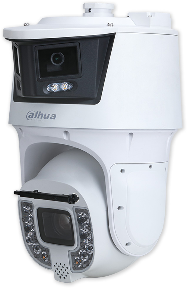 Speciální venkovní kamera řady WizMind Panorama + PTZ s funkcí auto-tracking 3.0, aktivním zastrašováním a umělou inteligencí pro vyhledávání pohybujících se objektů. Střežení perimerů, kategorizace osoba a vozidlo, detekce tváří, video metadata, IVS pravidla apod. IR s dosahem 300 m, Napájení PoE++ (802.3bt) nebo 36 VDC (zdroj součástí). Nástenný držák PFB307W je součástí balení.