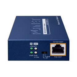 PoE extender, který prodlužuje ethernetový přenos dat, tak i napájení PoE dle IEEE 802.3bt/802.3at/802.3af nad standardní limit 100 m, Cat.5e na 300 m, Cat.6 na 400 m.