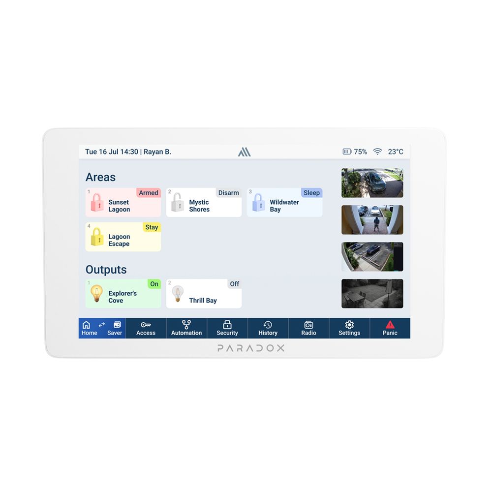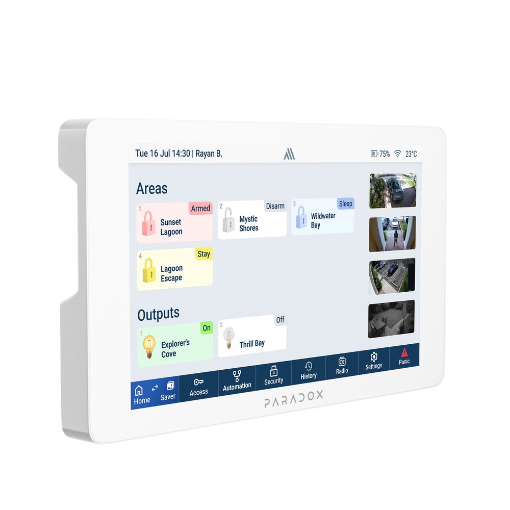 Grafická klávesnice s dotykovým 7" barevným LCD displejem a bezdrátovým přenosem dat a Wi-Fi. Signalizace stavu systému je pomocí ikon a textů a ovládání probíhá přímo pomocí dotykového LCD. Ovládání je velice přehledné, intuitivní a uživatelsky pohodlné. Klávesnice může zobrazovat teplotu a stav jednotlivých čidel. V klávesnici lze nastavovat uživatelské přizpůsobení, vkládat obrázky a využívat bohatou nabídku zvuků. Vestavěný záložní Li-Ion akumulátor.