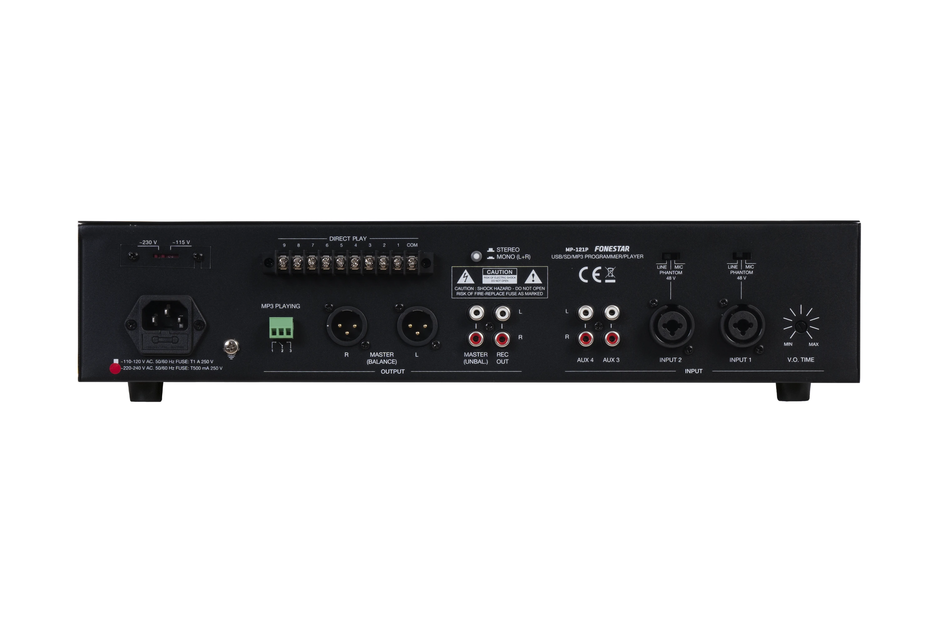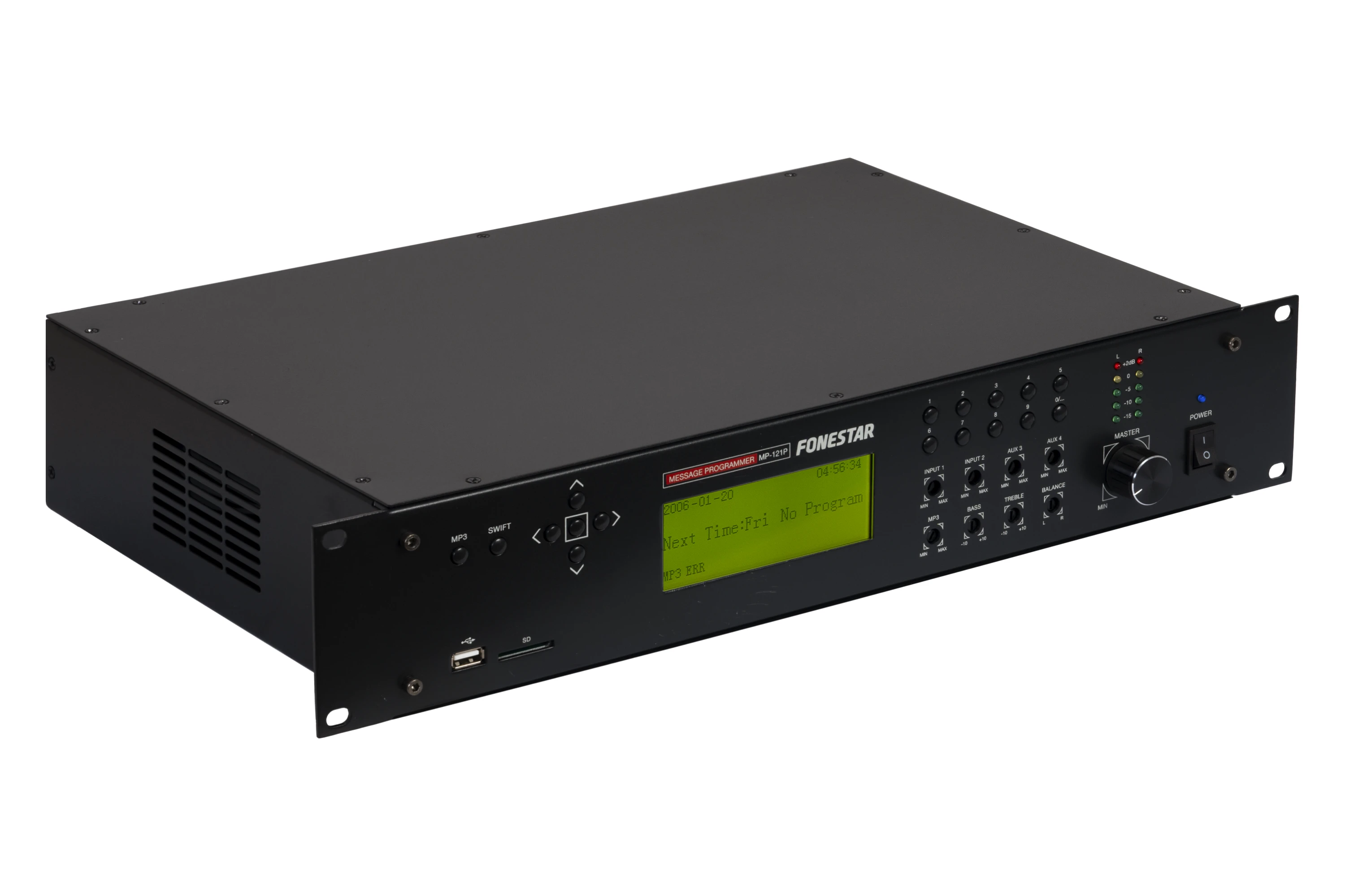 Fonestar MP-121P je praktický týdenní plánovač s integrovaným USB/SD přehrávačem, ideální pro automatizované ozvučení a hlášení. Umožňuje přehrávání až 9 přednastavených zpráv sepnutím kontaktu a nabízí spolehlivé řešení pro pravidelné i okamžité sdělení v komerčních a veřejných prostorách.