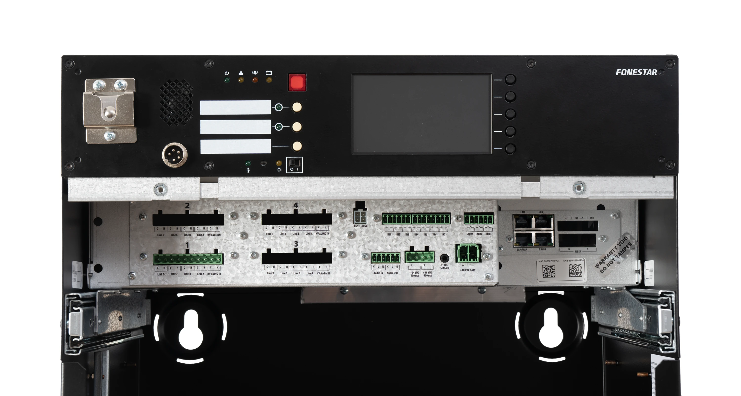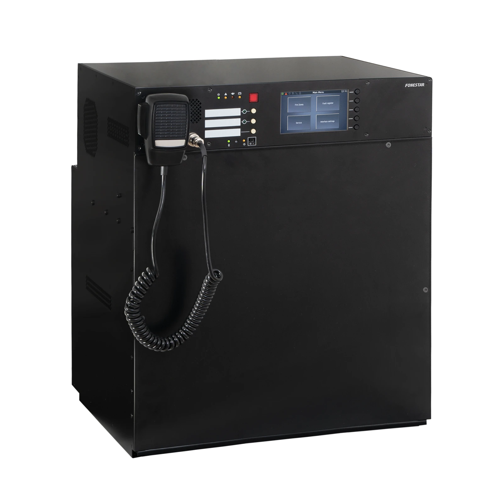 • Vestavěný hasičský mikrofon, dotykový displej, DSP a programovatelné GPI/O vstupy a výstupy