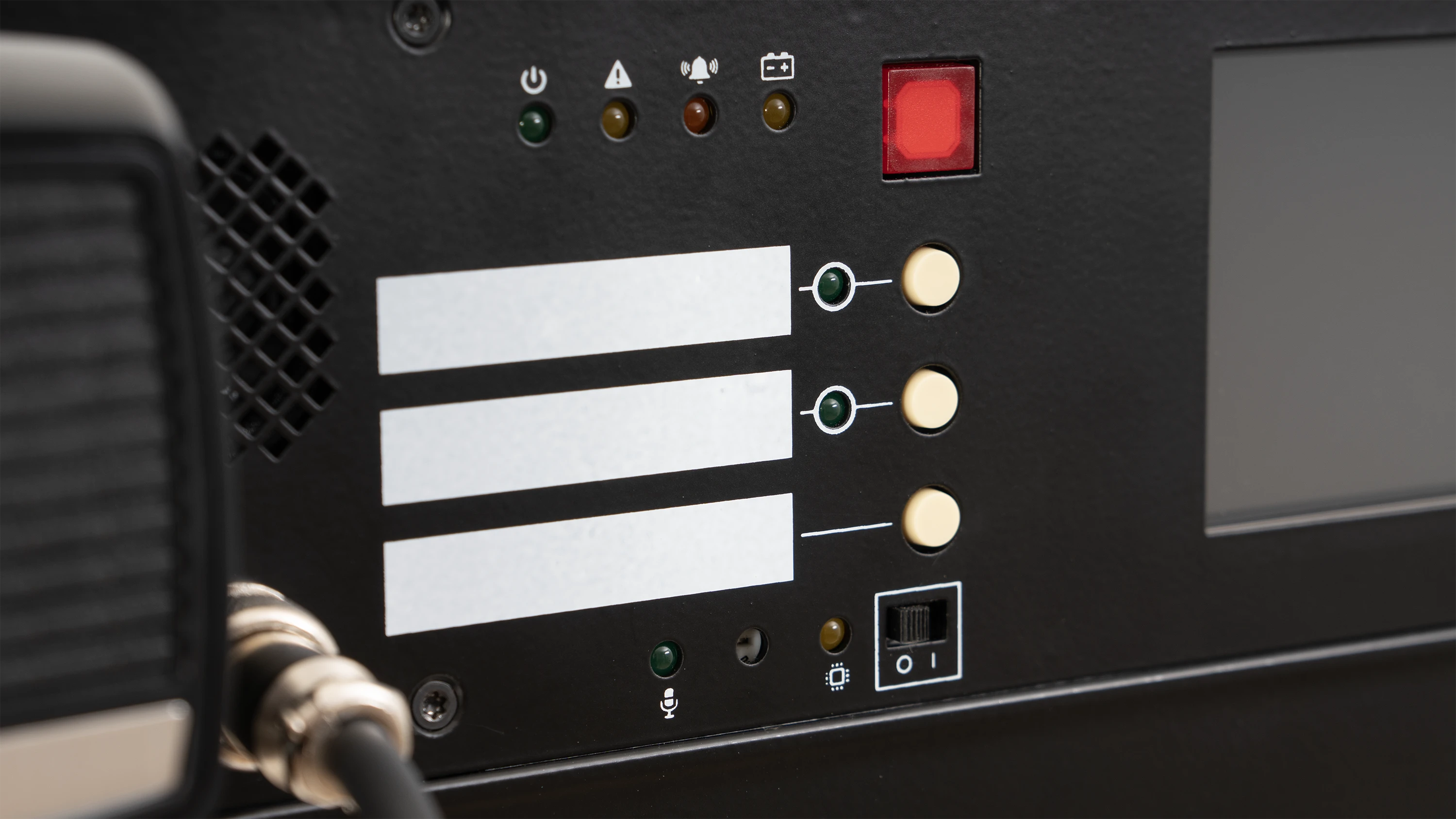 • Vestavěný hasičský mikrofon, dotykový displej, DSP a programovatelné GPI/O vstupy a výstupy