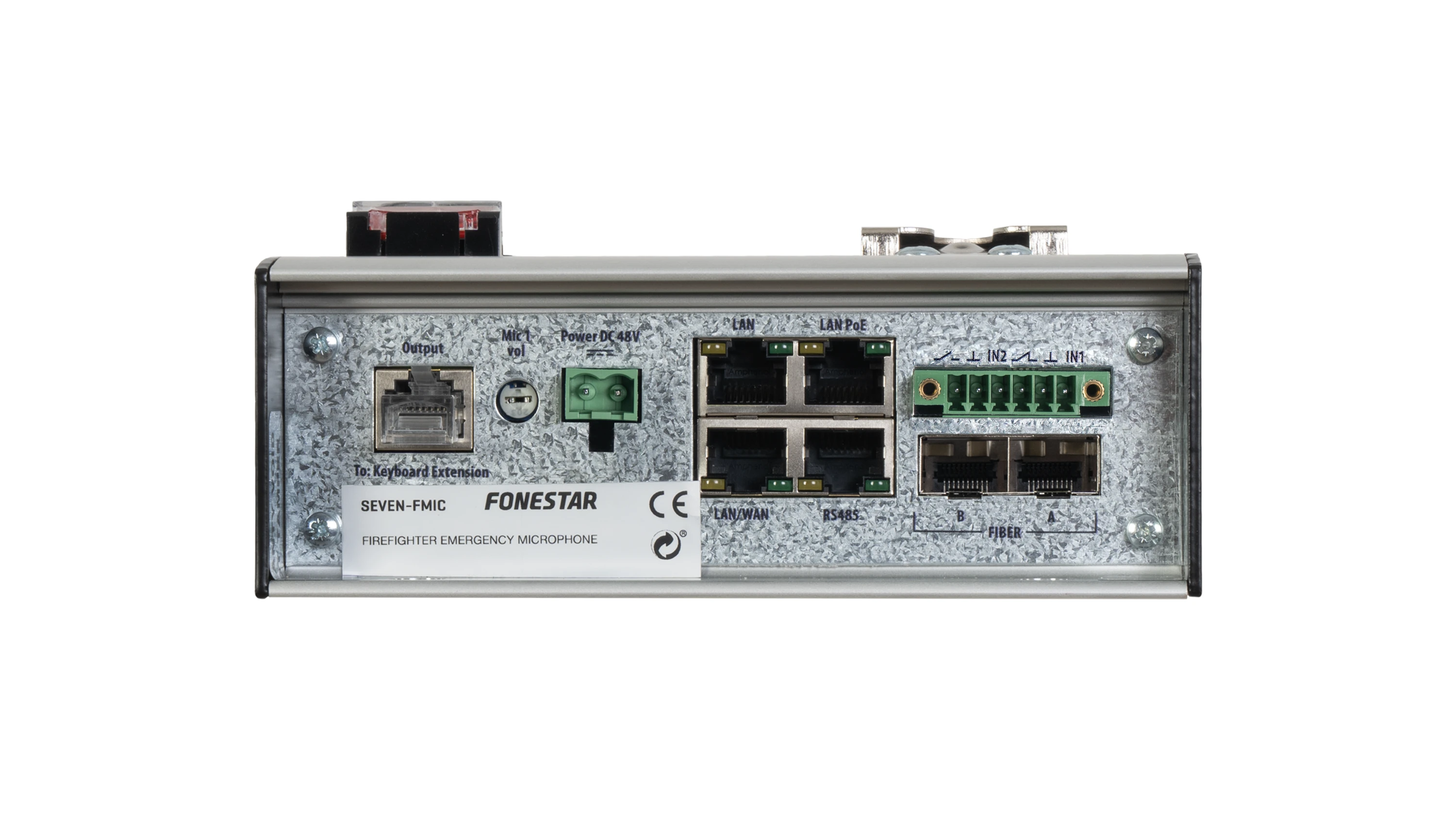 Fonestar SEVEN-FMIC je emergency stanice hlasatele pro systémy SEVEN dle EN 54, určený pro hasiče a specializovaný personál. Umožňuje aktivaci nouzových situací, přehrávání poplachových zpráv i vydávání varování a zajišťuje spolehlivou komunikaci i při výpadku centrální řídicí jednotky.