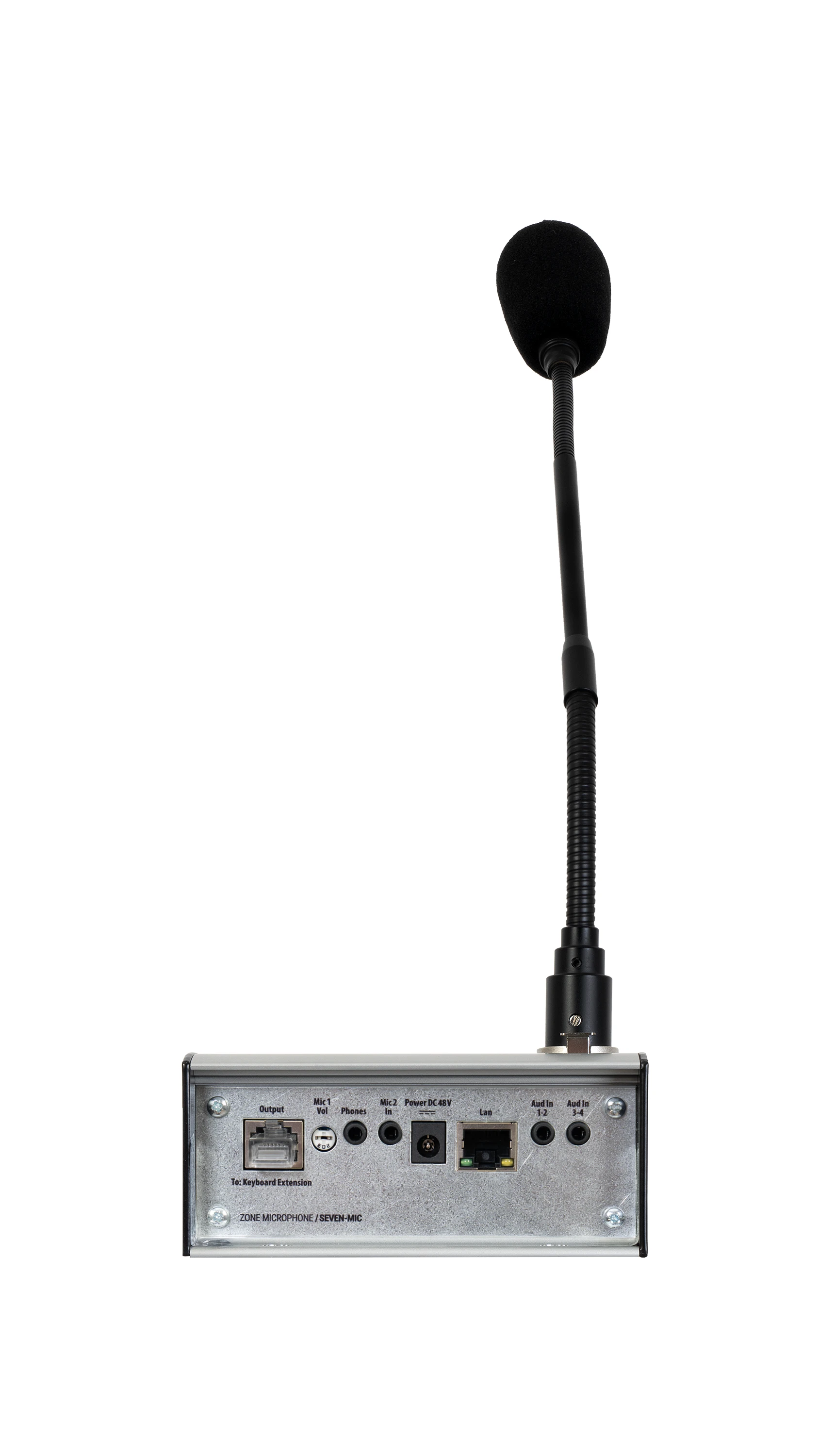 Fonestar SEVEN-MIC je zónový mikrofon pro systémy SEVEN dle EN 54, určený pro živá hlášení a ovládání zón. Nabízí programovatelná tlačítka, výběr jednotlivých nebo skupinových zón a možnost připojení přímo k řídicí jednotce nebo do TCP/IP sítě.