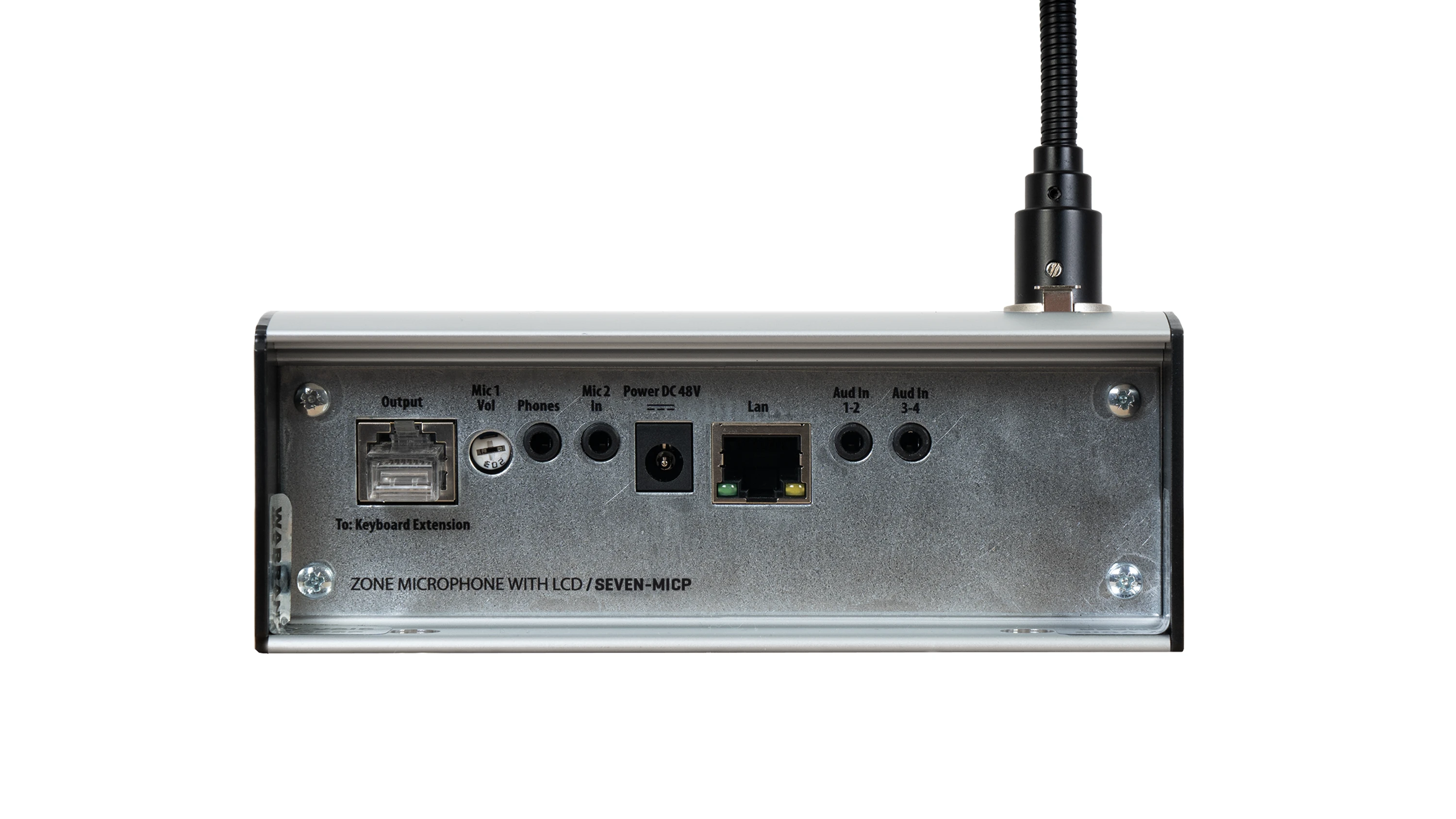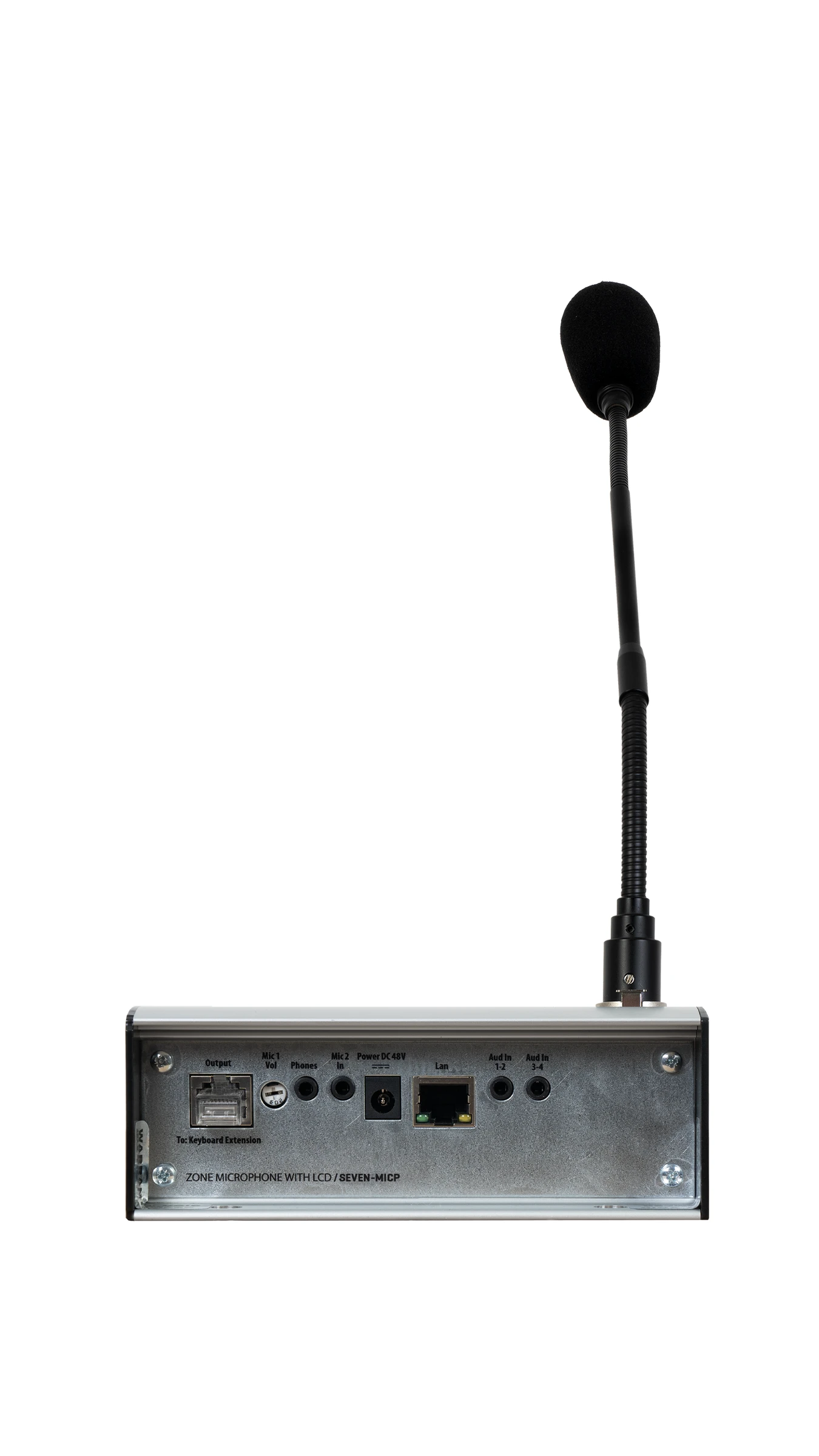 Fonestar SEVEN-MICP je zónový mikrofon pro systémy SEVEN dle EN 54 s 4,3" dotykovým LCD displejem. Umožňuje intuitivní ovládání zón, nabízí funkci interkomu, obousměrnou komunikaci a je vybaven čtyřmi pomocnými audio vstupy a vstupem pro mikrosluchátka.