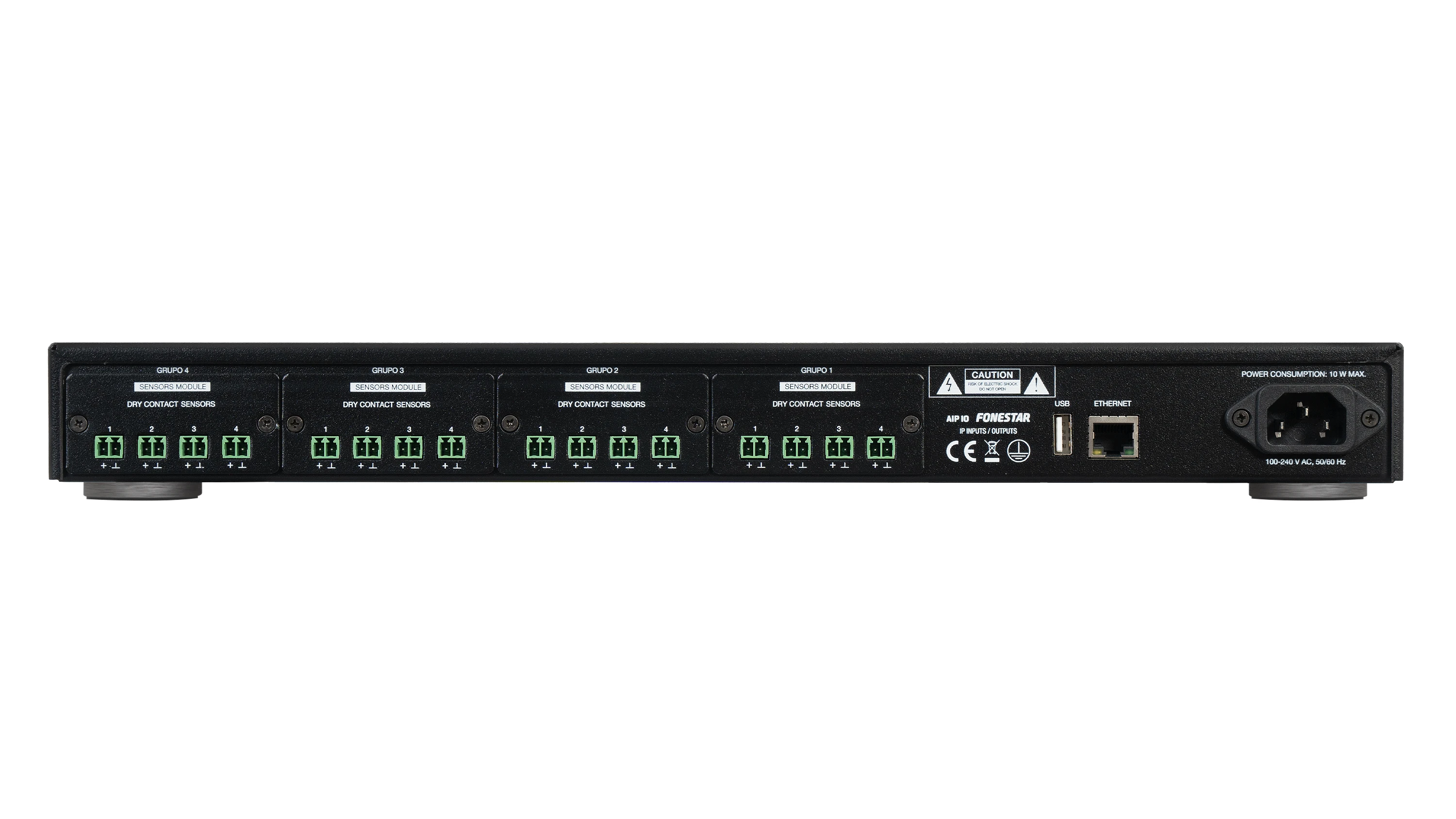 Fonestar AIP-IO-16S je univerzální I/O zařízení pro IP audio systém AIP s 16 programovatelnými izolovanými vstupy. Umožňuje aktivaci událostí sepnutím kontaktu a zajišťuje flexibilní integraci a automatizaci v rozsáhlých instalacích.