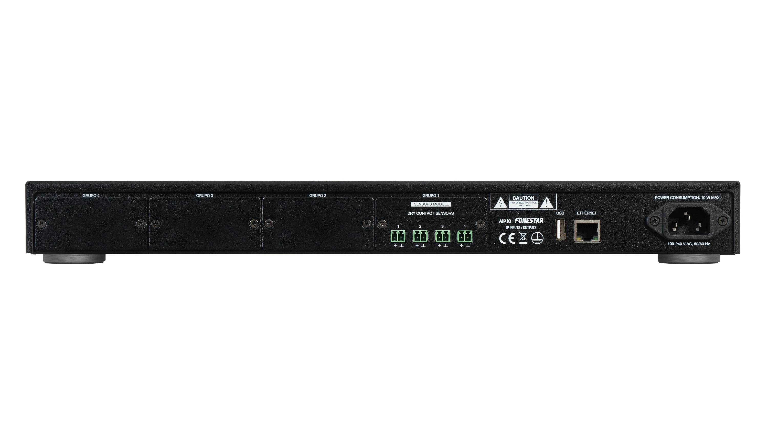 Fonestar AIP-IO-4S je univerzální I/O zařízení pro IP audio systém AIP se 4 programovatelnými izolovanými vstupy. Umožňuje aktivaci událostí sepnutím kontaktu a je vhodné pro menší či modulárně rozšiřované instalace.