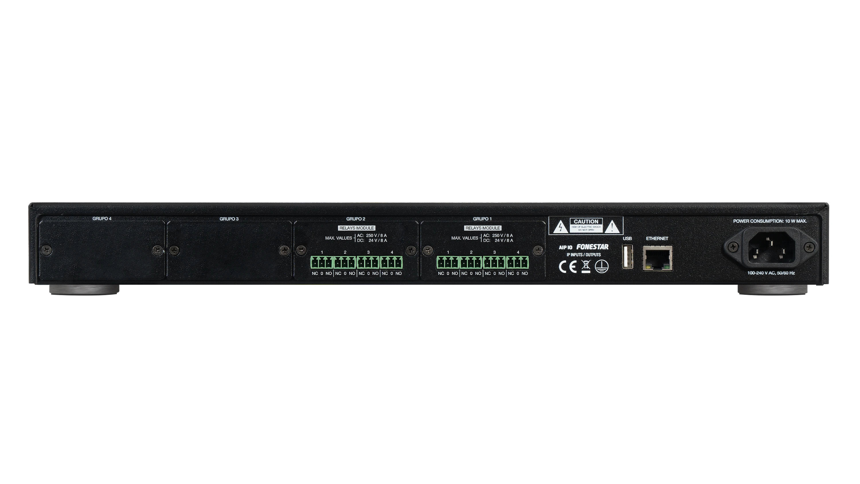 Fonestar AIP-IO-8R je univerzální I/O zařízení pro IP audio systém AIP s 8 programovatelnými výstupními relé. Umožňuje ovládání externích zařízení a řízení třetím vodičem a je vhodné pro profesionální IP audio instalace různého rozsahu.