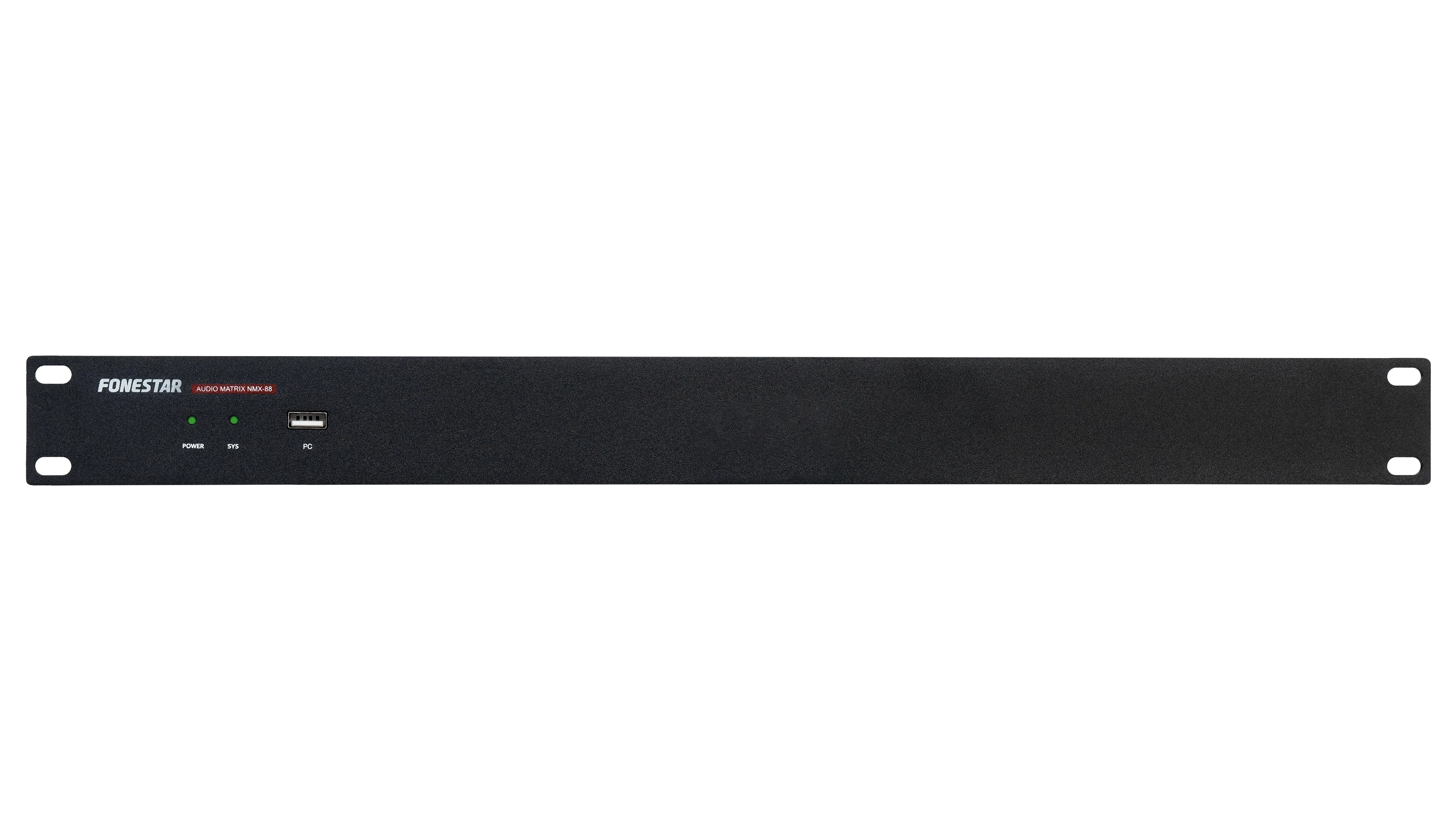 Fonestar NMX-88 je profesionální 8 × 8 audio matice s DSP procesorem a 8 GPIO rozhraními. Díky architektuře ADI SHARC 21489 poskytuje flexibilní směrování, zpracování a řízení zvukových signálů, ideální pro komerční a veřejné instalace.
