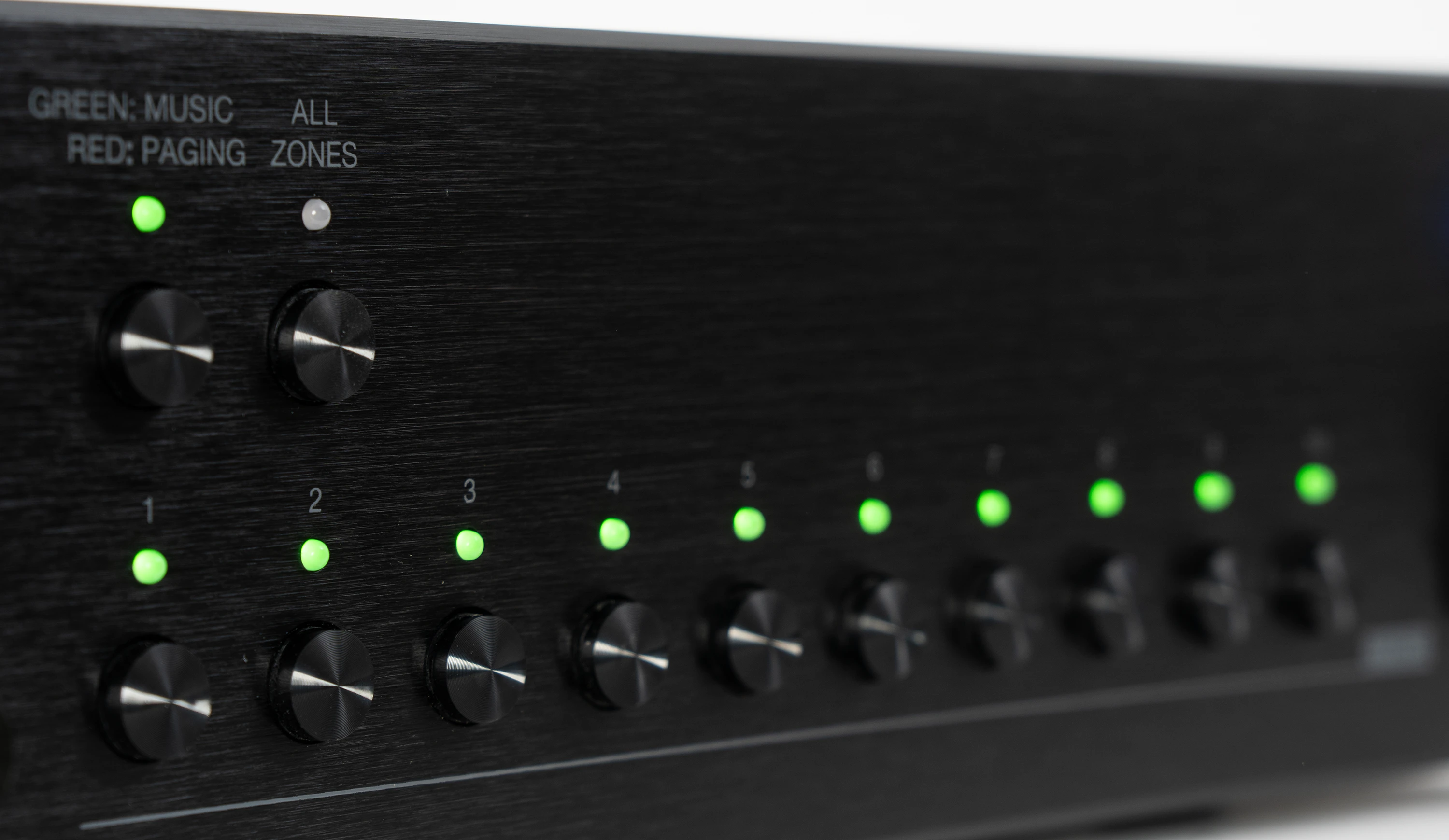 • Navrženo pro komerční a veřejné instalace s potřebou rozdílného zvuku v jednotlivých zónách