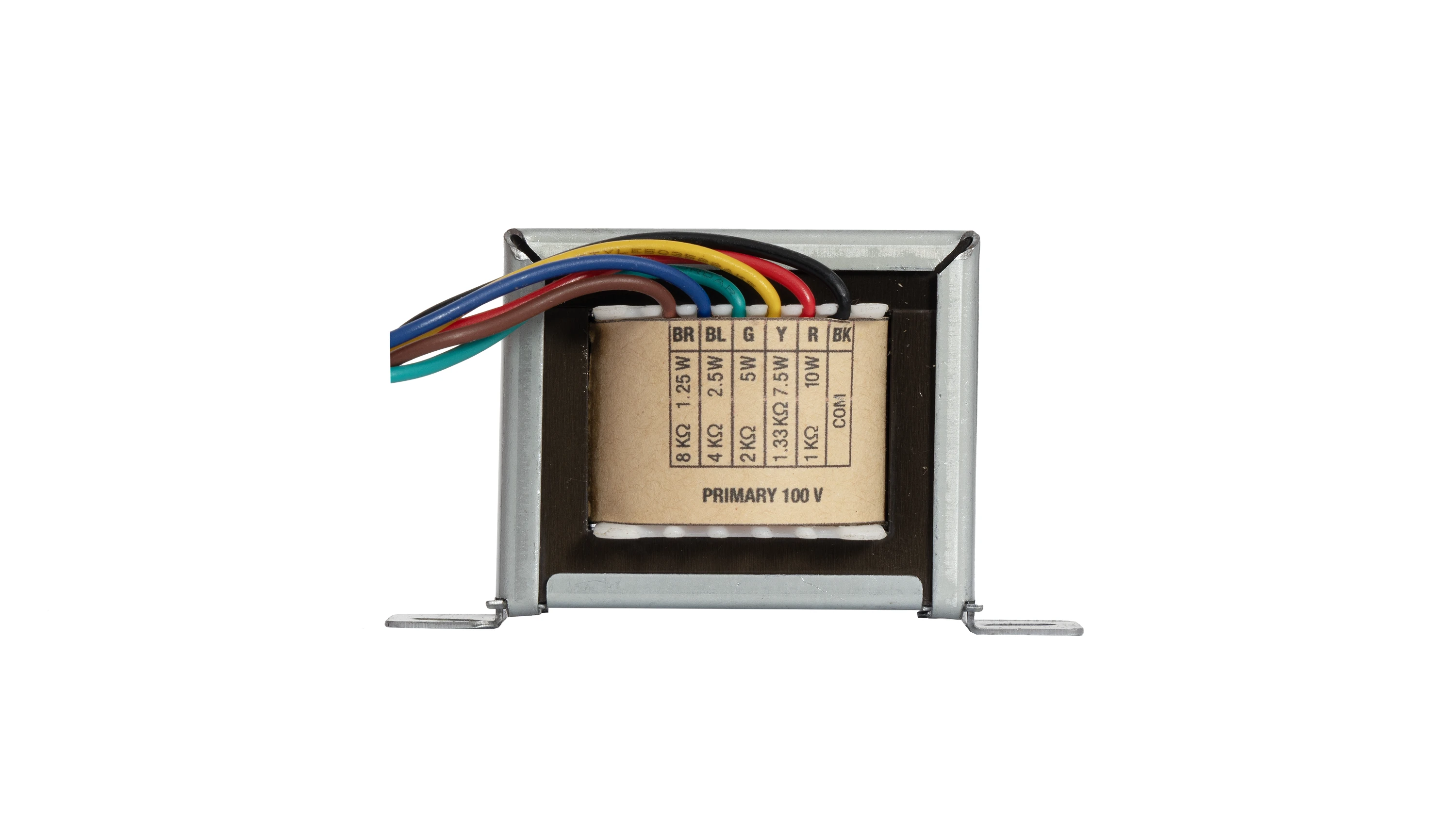 Fonestar CV-1910 je linkový transformátor 100 V pro nízkoimpedanční reproduktory s výkonovými odbočkami 10/7,5/5/2,5/1,25 W RMS. Umožňuje snadné začlenění běžných reproduktorů do 100V rozvodných ozvučovacích systémů.