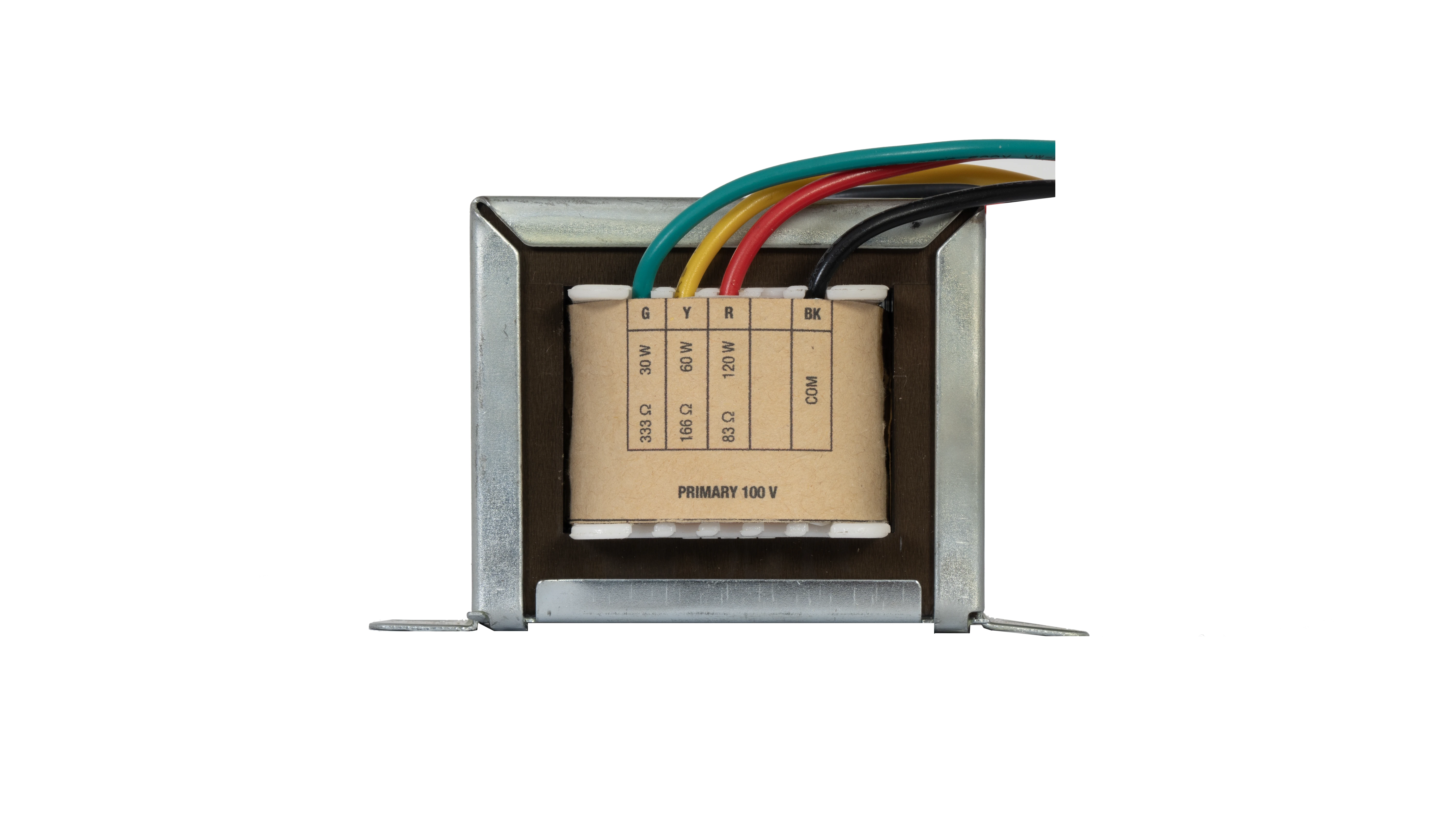 100 V linkový transformátor 125 W pro nízkoimpedanční reproduktory