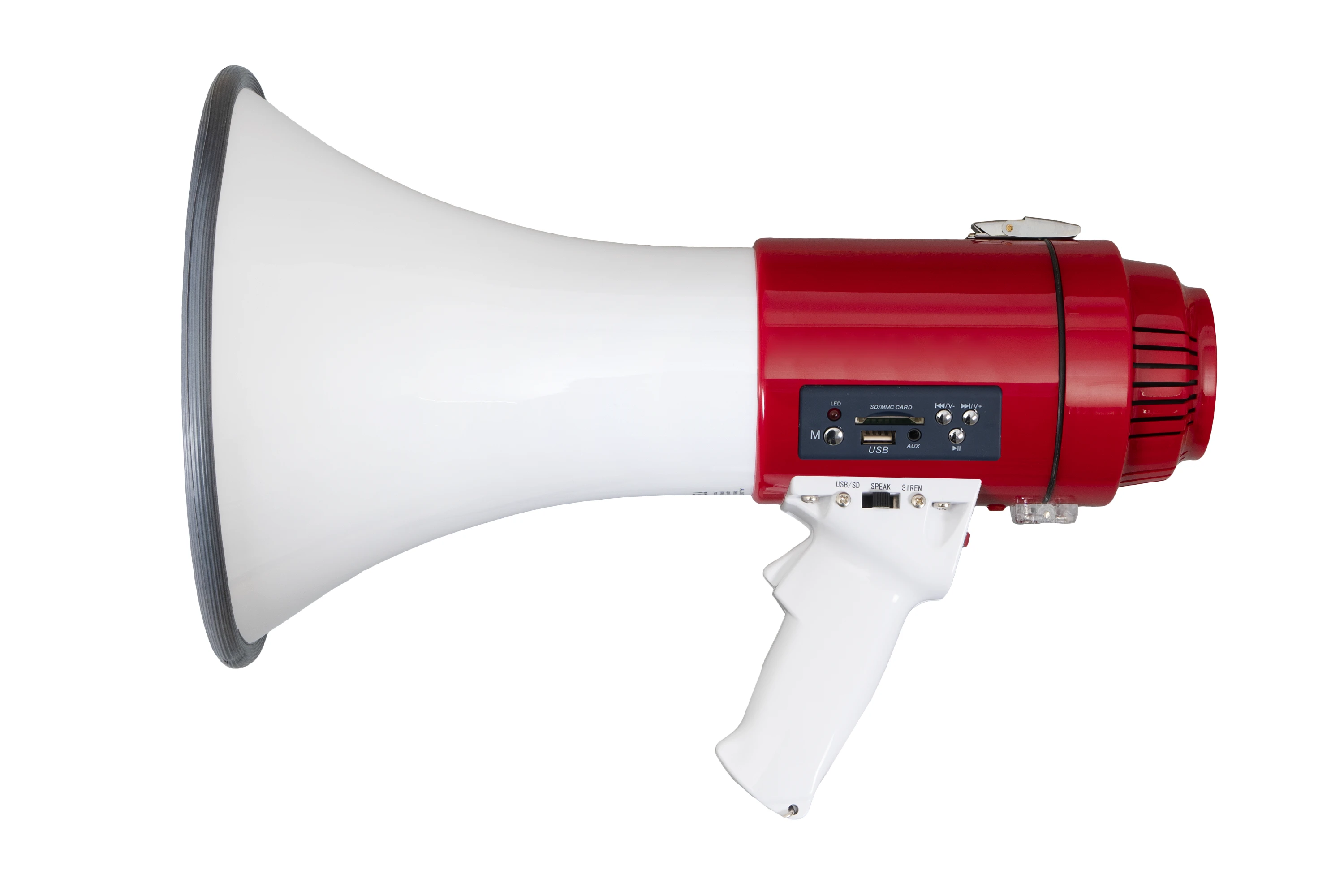 Megafon se sirénou, USB/SD přehrávač, rekordér, výkon 25 W