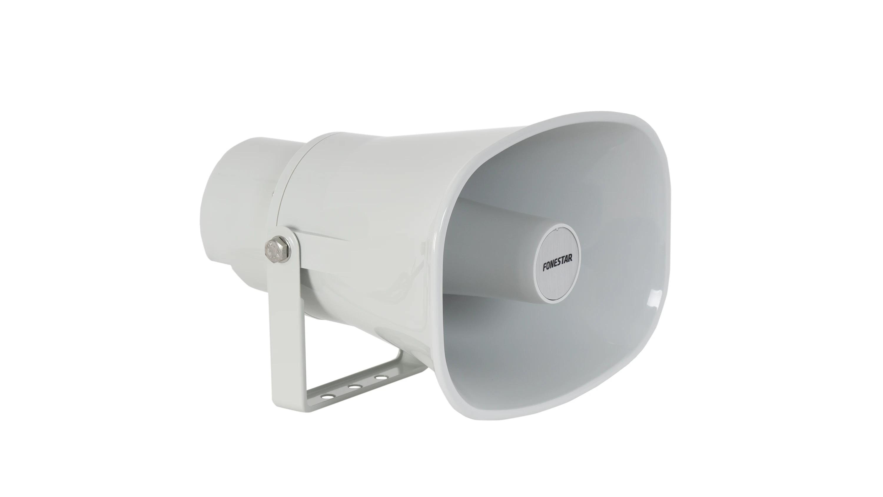 Fonestar VULKAN-15T je 100 V exponenciální reproduktor (15/7,5 W @ 100 V) s IP-66, vhodný pro dlouhé kabelové trasy a vícereproduktorové instalace.
