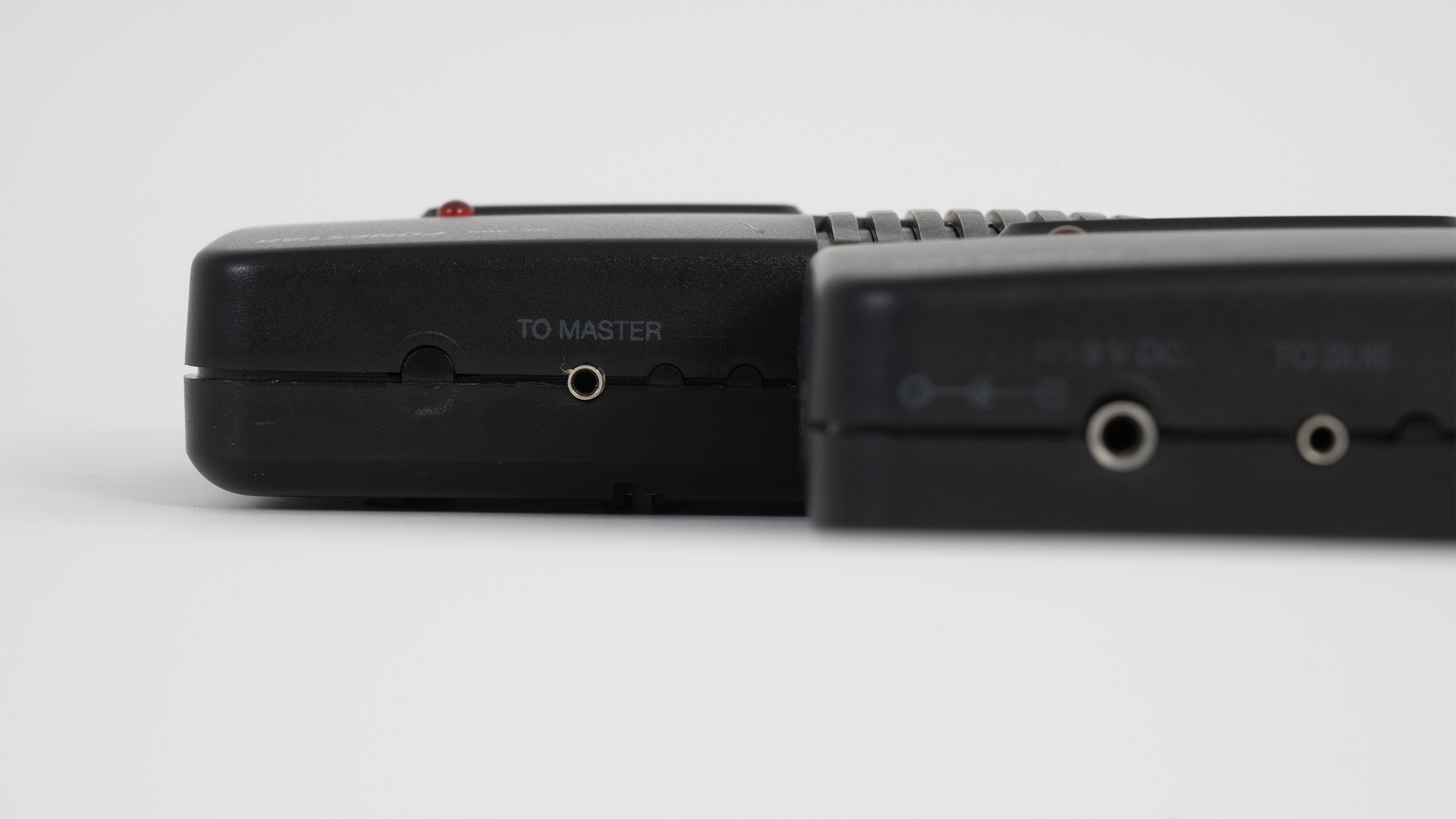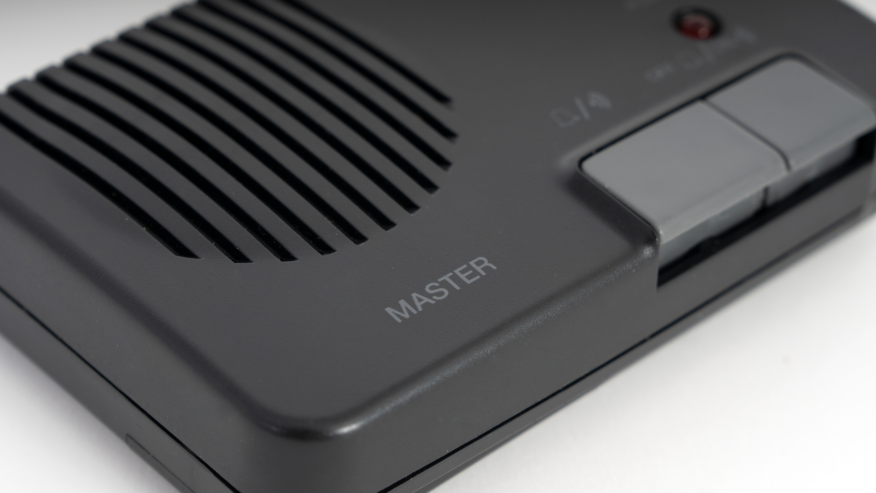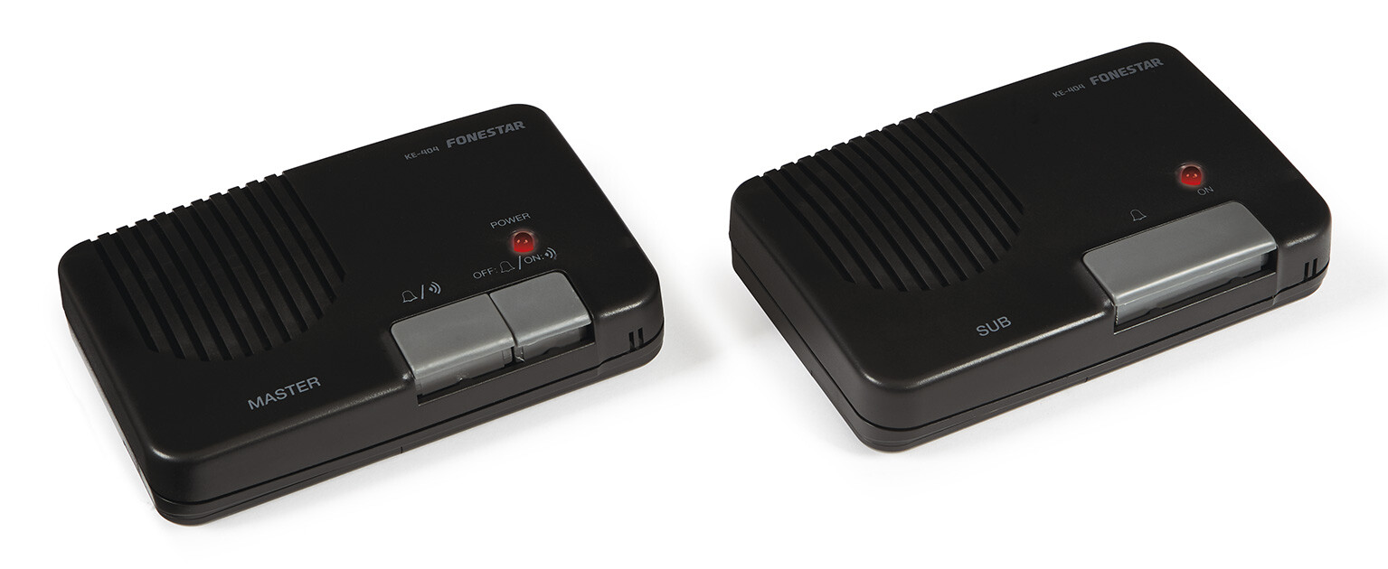 KE-404 je pár interkomů propojitelný dodávaným kabelem. Primární jednotka ovládá přenos, sekundární volá na hlavní; nechybí monitorovací funkce, regulace hlasitosti a LED indikace.