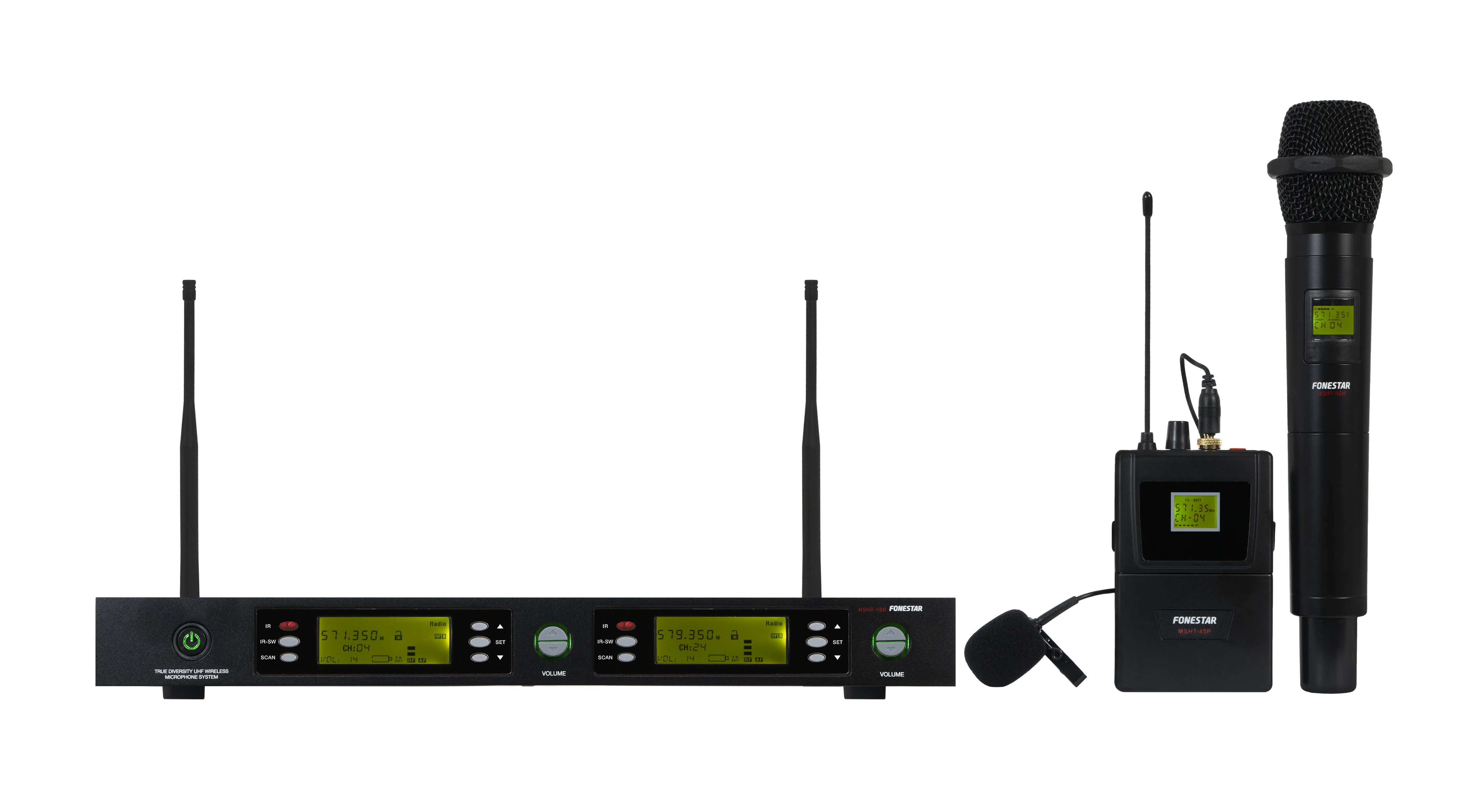 • UHF, 2 kanály (570–582 MHz), true diversity