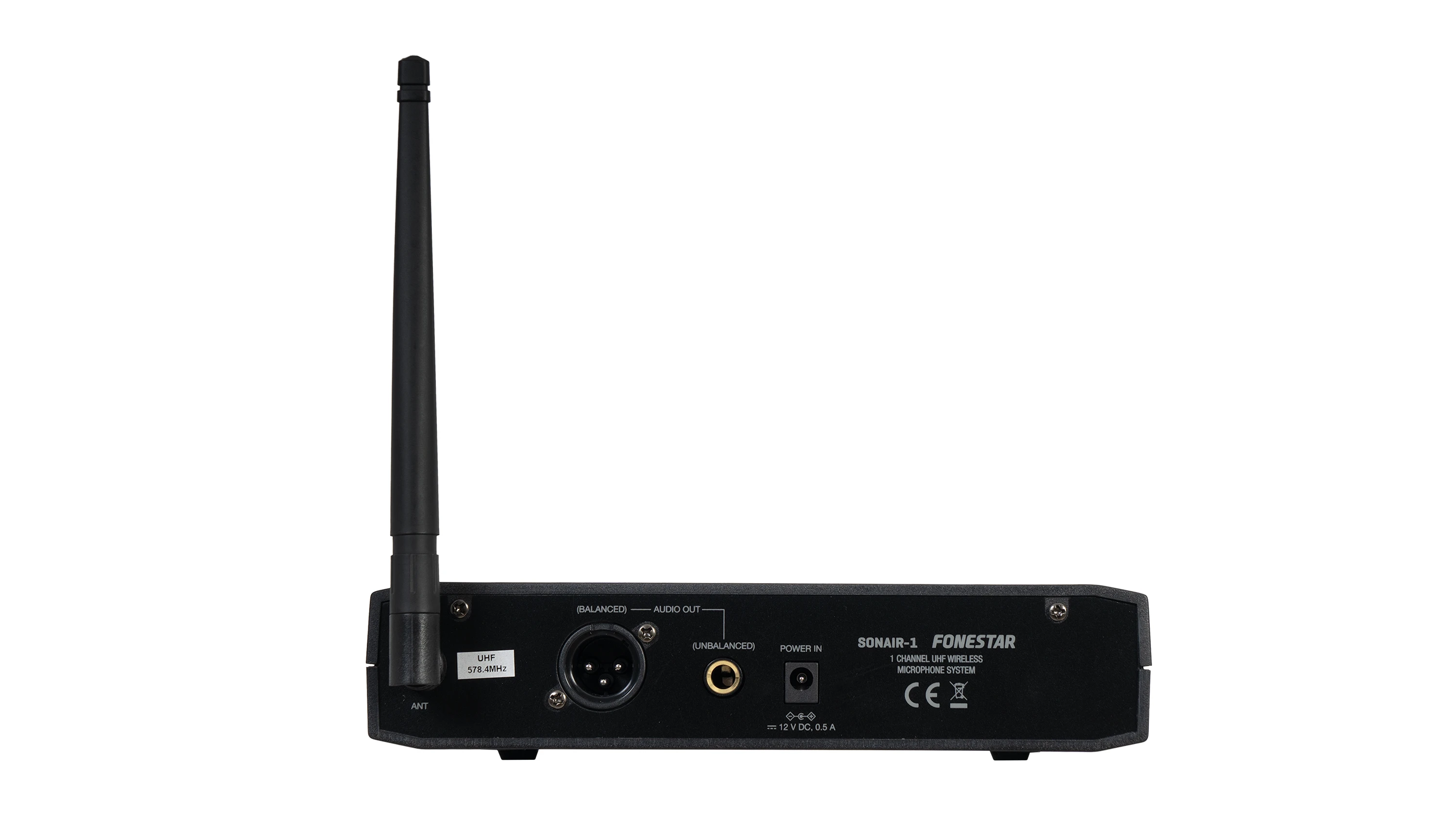 Bezdrátový mikrofon UHF s páskem 550-700 MHz, pevná přenosová frekvence, 8 dostupných kanálů, vysoký dosah a kvalita zvuku.
