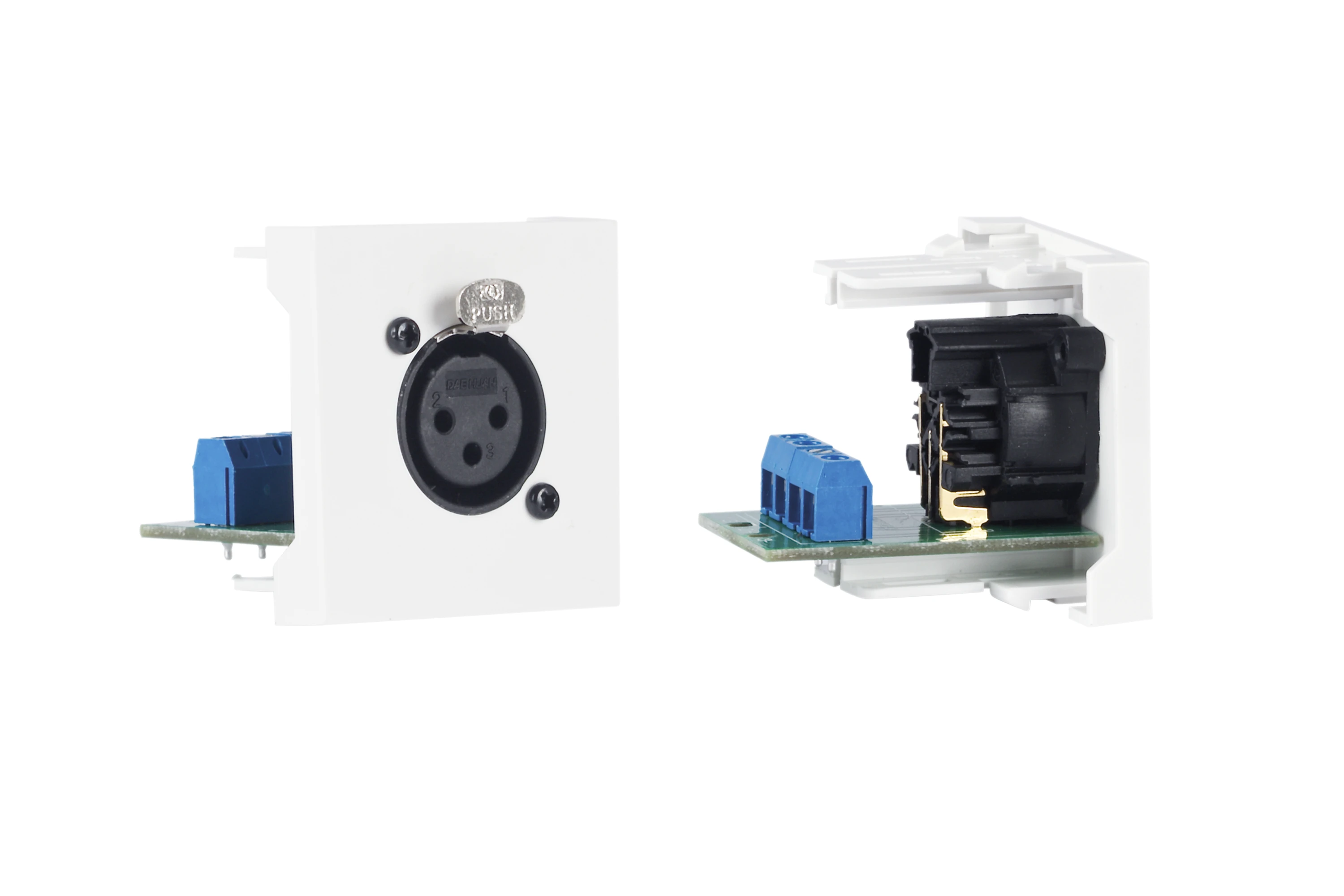 Modulární panel Fonestar WP-39X je 1 × modul připojovacího panelu s vestavěným XLR konektorem (samice) určený pro modulární spojovací systém Fonestar pro audiovizuální instalace, učebny, zasedací a konferenční prostory. Tento panel poskytuje pevné profesionální zakončení symetrického audio vstupu/výstupu prostřednictvím XLR konektoru s 3 piny (samice) a je vybaven šroubovými svorkami pro spolehlivé připojení kabeláže během instalace. Je proveden v bílé barvě (RAL 9003) a má standardní rozměr 45 × 45 × 47 mm (hloubka) odpovídající 1 modulu systému Fonestar WP, což umožňuje jeho kombinaci s dalšími moduly v jednom rámečku či krabičce.