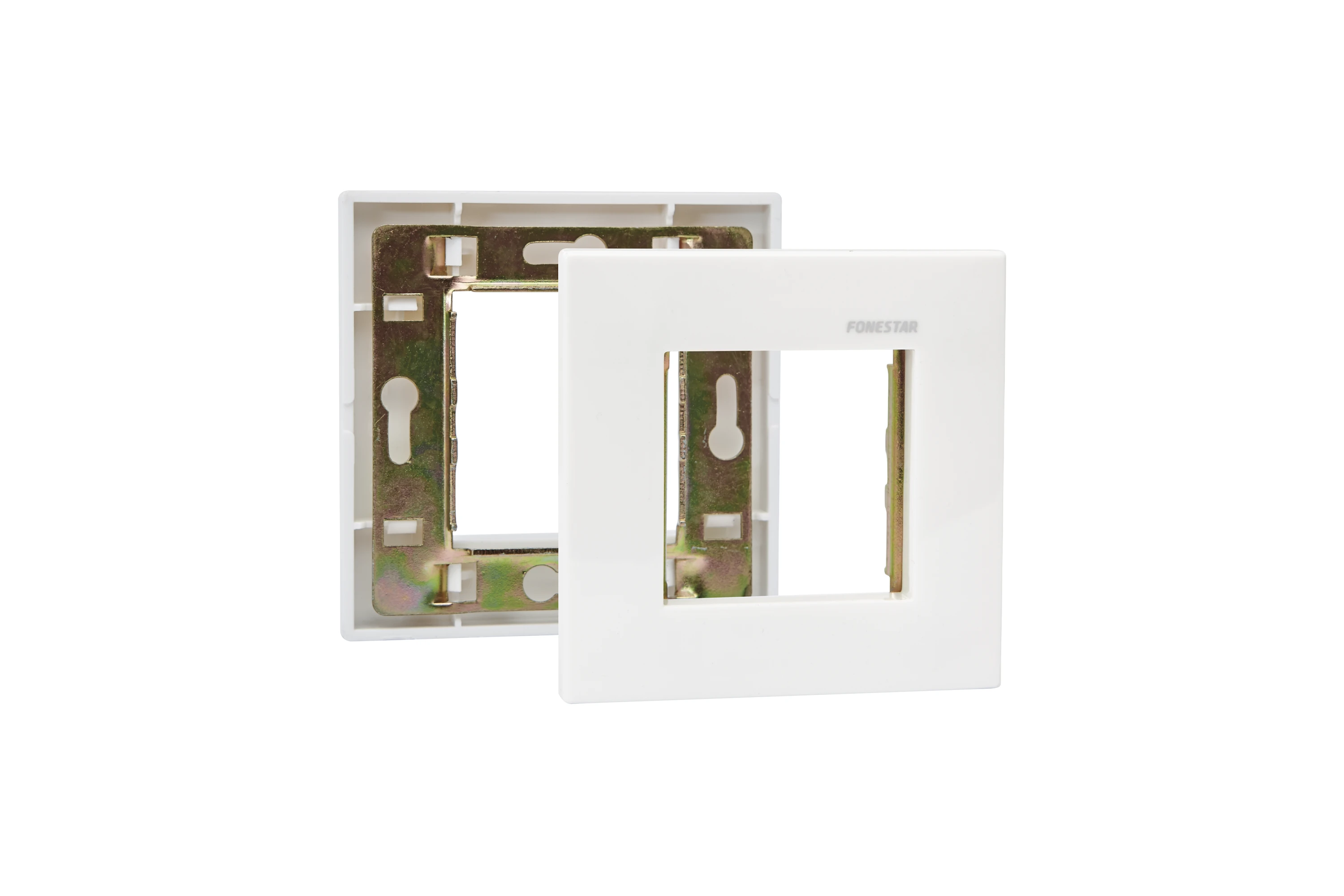 Instalační rámeček a šasi Fonestar WP-89MCH je modulární instalační krycí rámeček určený pro zapuštěnou montáž jednoho modulu ve standardní čtvercové instalační krabici (80 × 80 mm) podle evropského normovaného rozměru. Tento rám slouží jako pevná a estetická základna pro osazení jednoho konektorového modulu Fonestar WP (např. audio, video, datový nebo jiný modul) v audiovizuálních instalacích, učebnách, zasedacích a konferenčních místnostech či jiných AV aplikacích. Vyroben je v bílé barvě (RAL 9003) a poskytuje otevření pro jeden připojovací panel, čímž zajišťuje profesionální instalaci a čisté zakončení rozhraní přímo ve zdi.