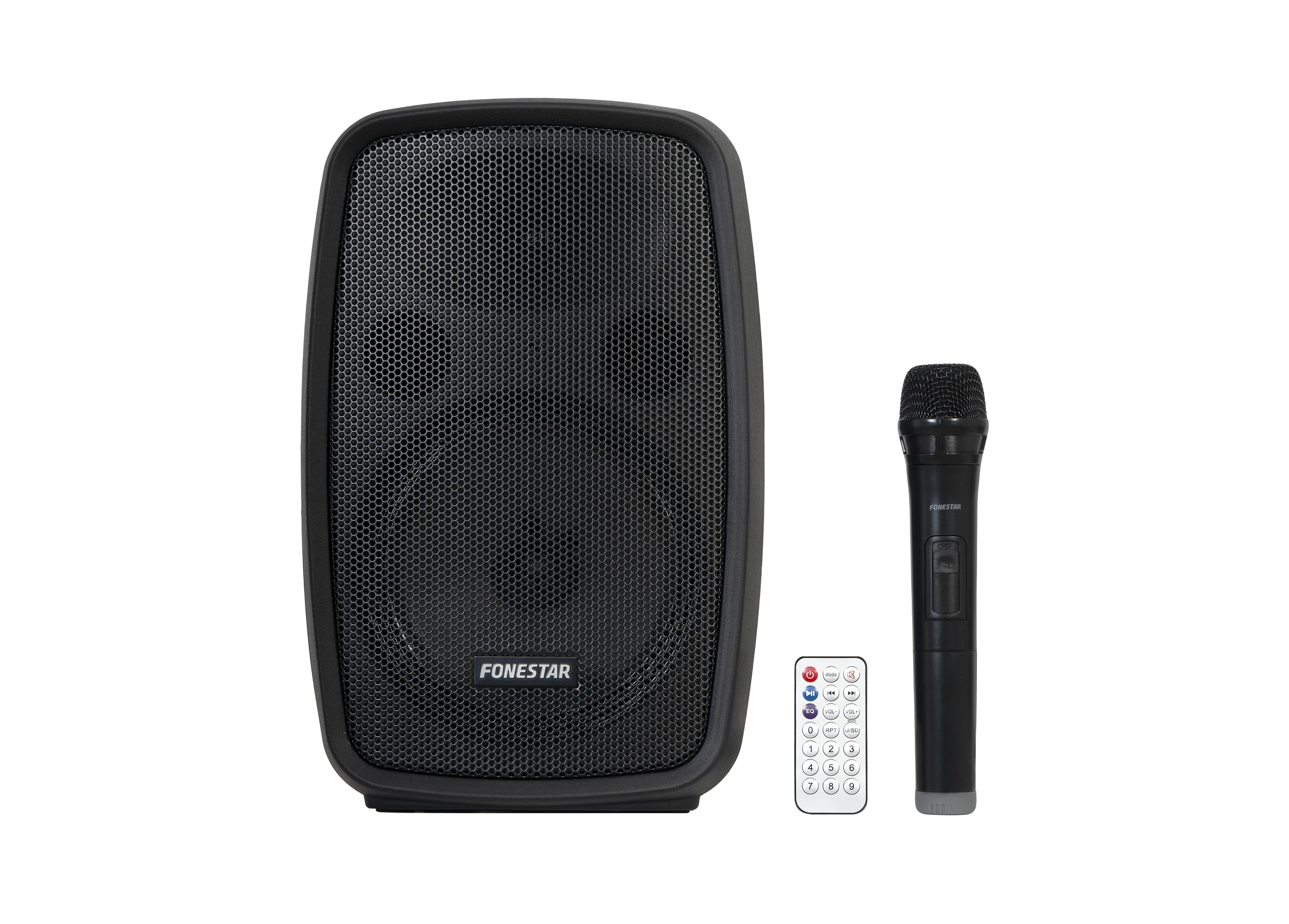 Aktivní 8" přenosný reproduktor s vysokým výkonem a kvalitou zvuku díky vysoce účinnému zesilovači třídy D. Integruje všechny potřebné prvky pro živé vystoupení nebo proslov: bezdrátový UHF ruční mikrofon, vstup pro mikrofon, stereofonní pomocný vstup, Bluetooth přijímač, USB/microSD přehrávač, digitální FM tuner se 40 automatickými stanicemi, echo funkci a tónovou regulaci. Velmi odolná konstrukce tvořená vstřikovanou formou zajišťuje robustnost při transportu a obsahuje otvor v podstavci pro montáž na stativ či na zeď. Součástí je dálkový ovladač pro pohodlné řízení. Velmi univerzální a přizpůsobitelný pro různé použití — venkovní aktivity, skupinové lekce, menší večírky, akce a mobilní vystoupení.