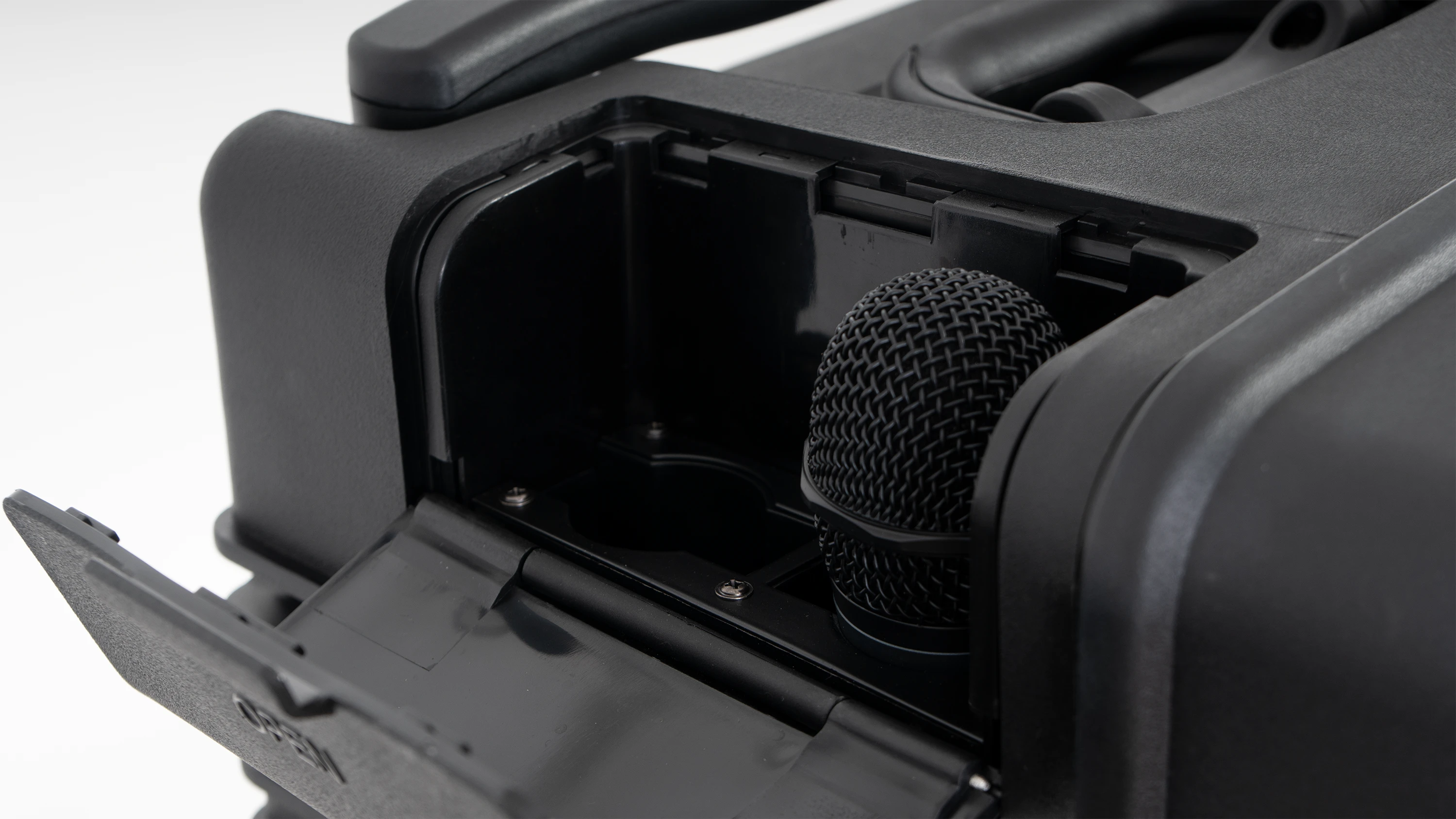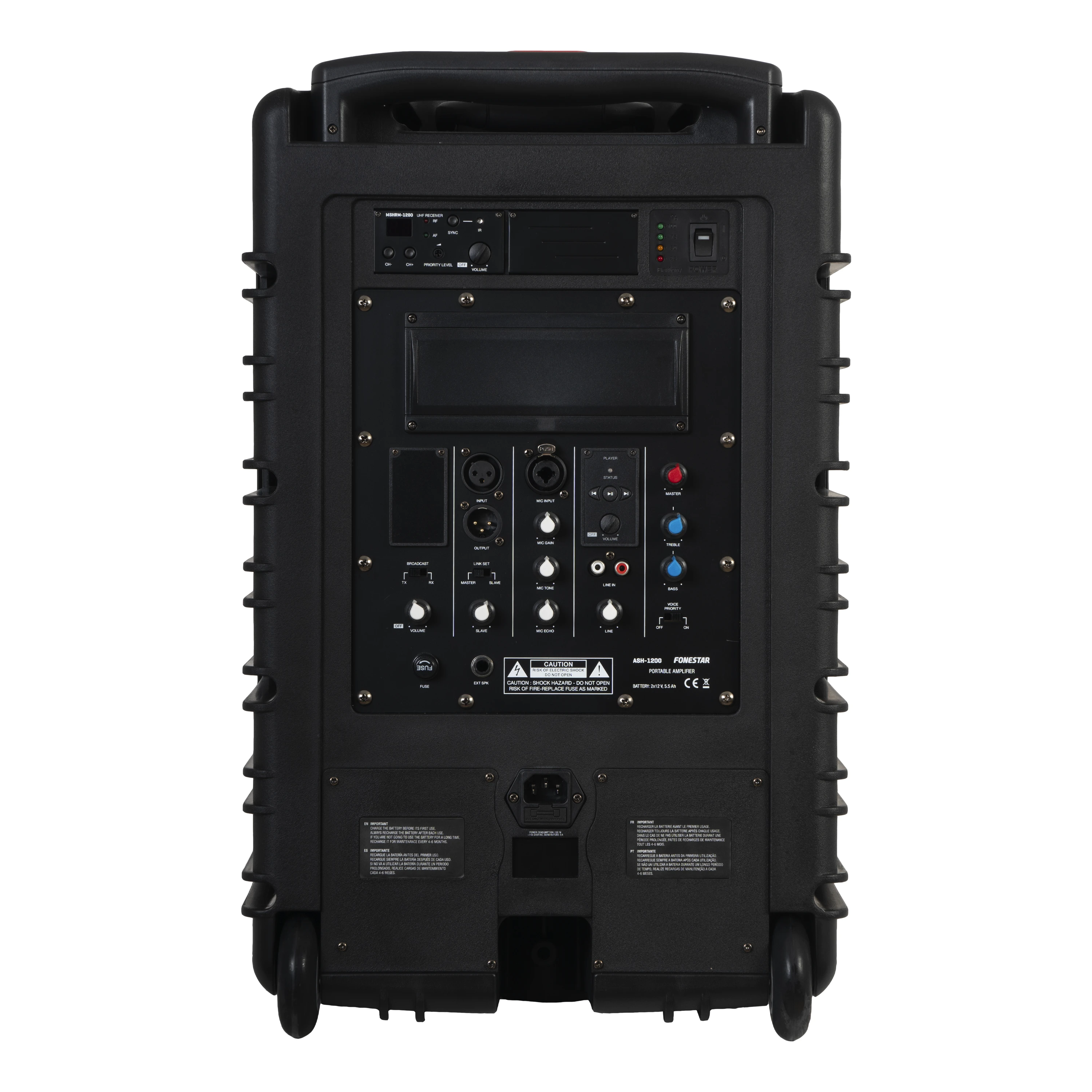 Přenosný 12” reproduktor s vysokým výkonem a zvukovou kvalitou díky vysoce účinnému zesilovači třídy D. Obsahuje bezdrátový ruční mikrofon, vstup pro mikrofon s echo efektem a regulací tónu pro karaoke použití, pomocný vstup, symetrický linkový vstup, symetrický linkový výstup, zesílený výstup pro pasivní repro, hlavní tónovou kontrolu a úložný prostor pro dva mikrofony. Audio vstupy mají standardní konektory XLR, jack a RCA. Díky transportnímu vozíku a dobíjecí baterii s otvorem pro montáž na stativ je velmi univerzální, ideální pro venkovní aktivity, skupinové lekce, menší večírky, akce a mobilní vystoupení.