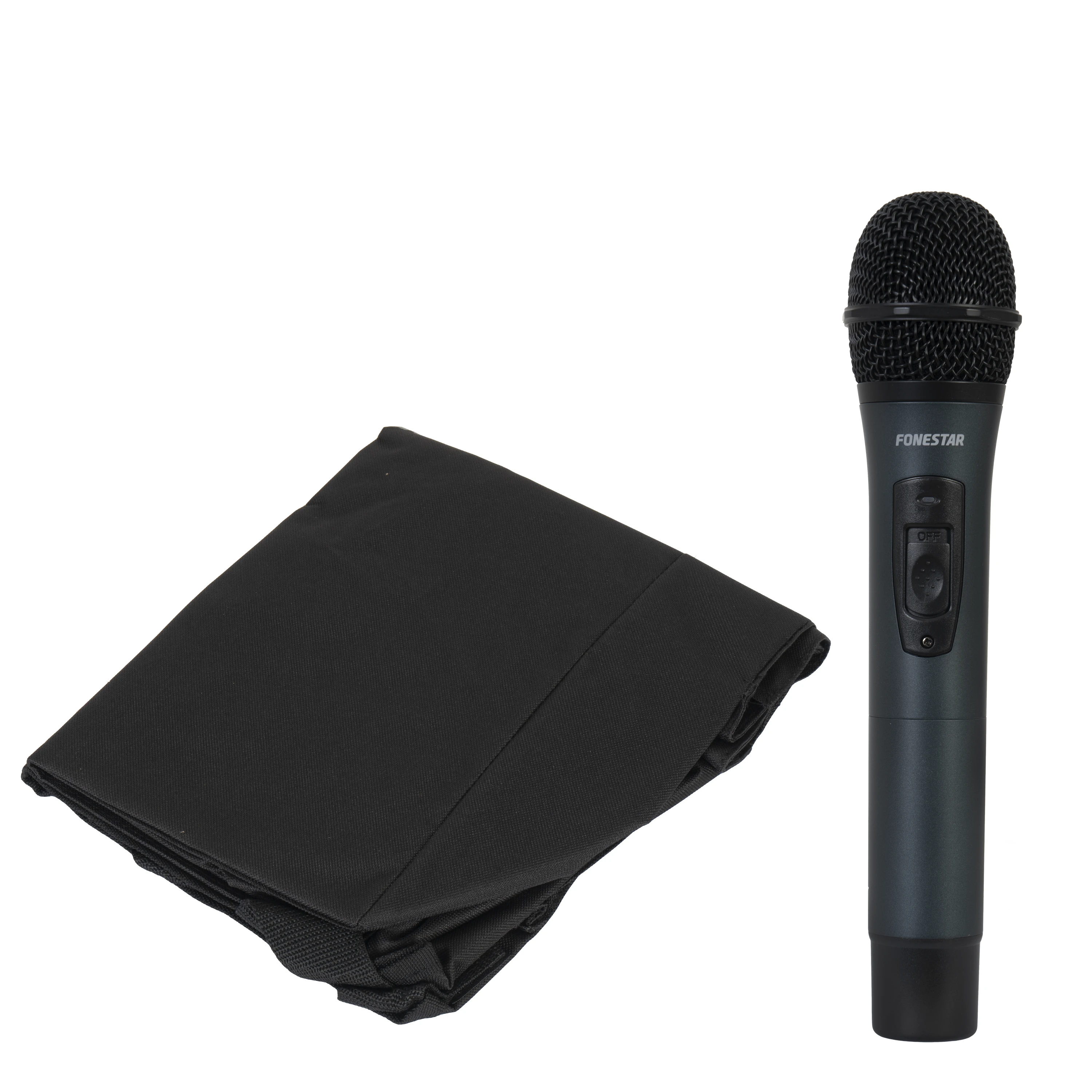 12″ přenosný reproduktor. 90 W RMS. UHF ruční bezdrátový mikrofon.