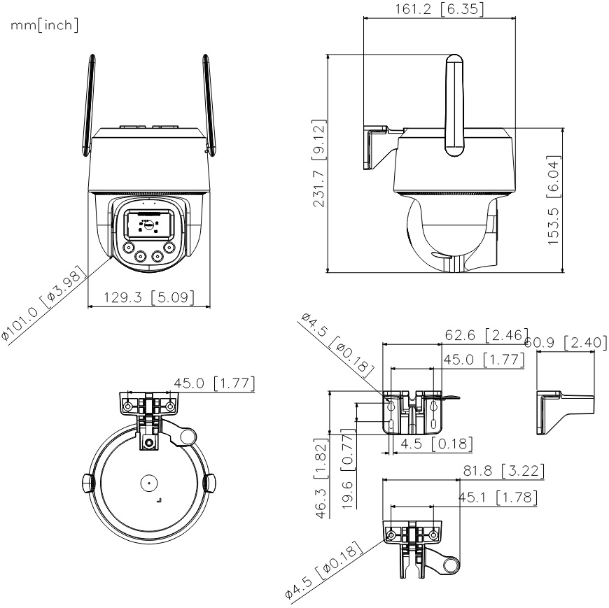 Venkovní IP 4G kamera řady WIzColor Series, instalace a ovládání mobilní aplikací DMSS, detekce osob, vozidel, auto tracking, integrovaný mikrofon a reproduktor (možnost obousměrné audiokomunikace), slot pro micro SD kartu, napájení 12 VDC (zdroj součástí).