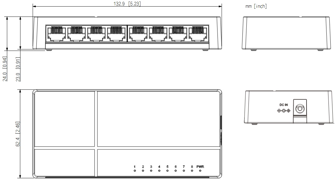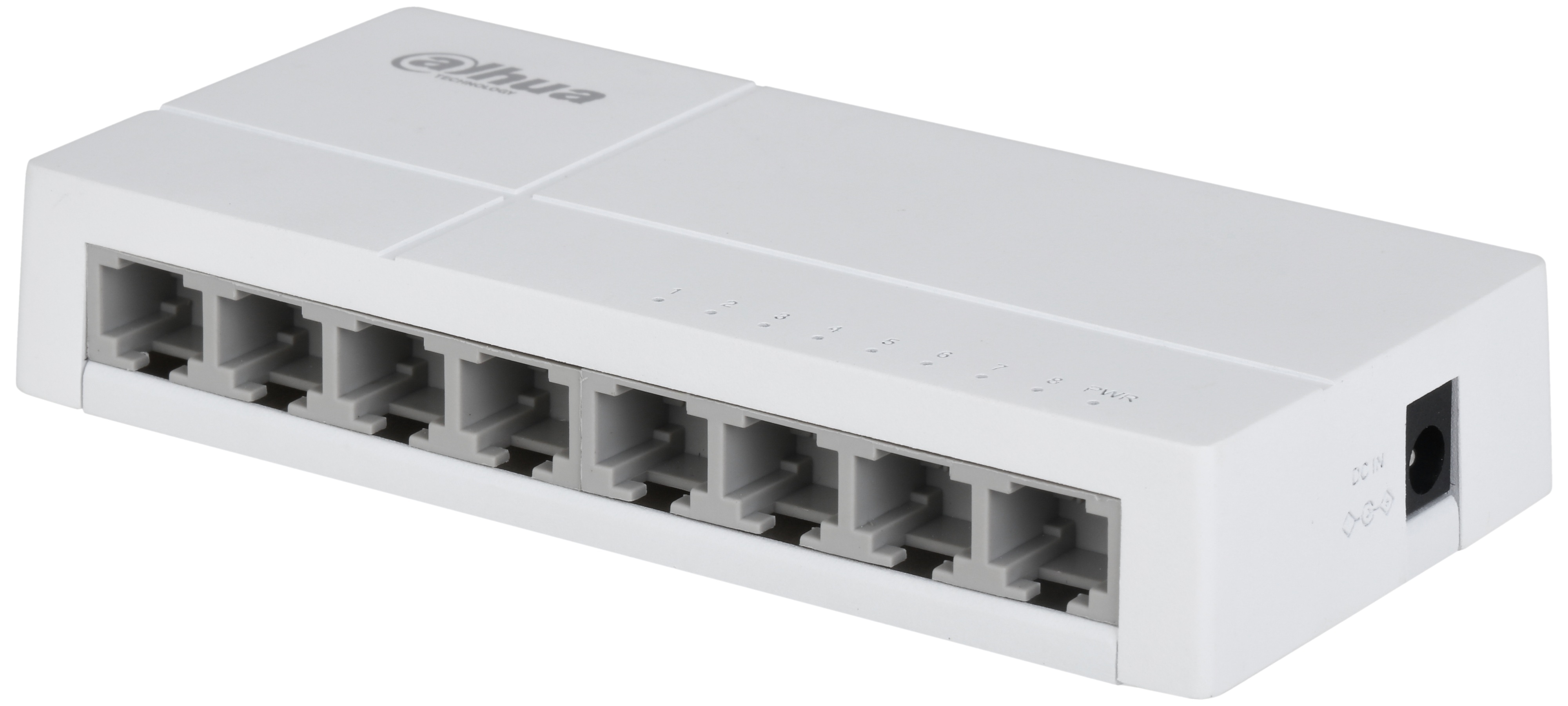 Desktop switch pro kancelář a domácnost, malé rozměry a nízká hmotnost. Plug and play: není nutná žádná konfigurace. Stabilní výkon pro dlouhodobý provoz, přepěťové ochrany, plastový kryt, napájecí zdroj je součástí balení.