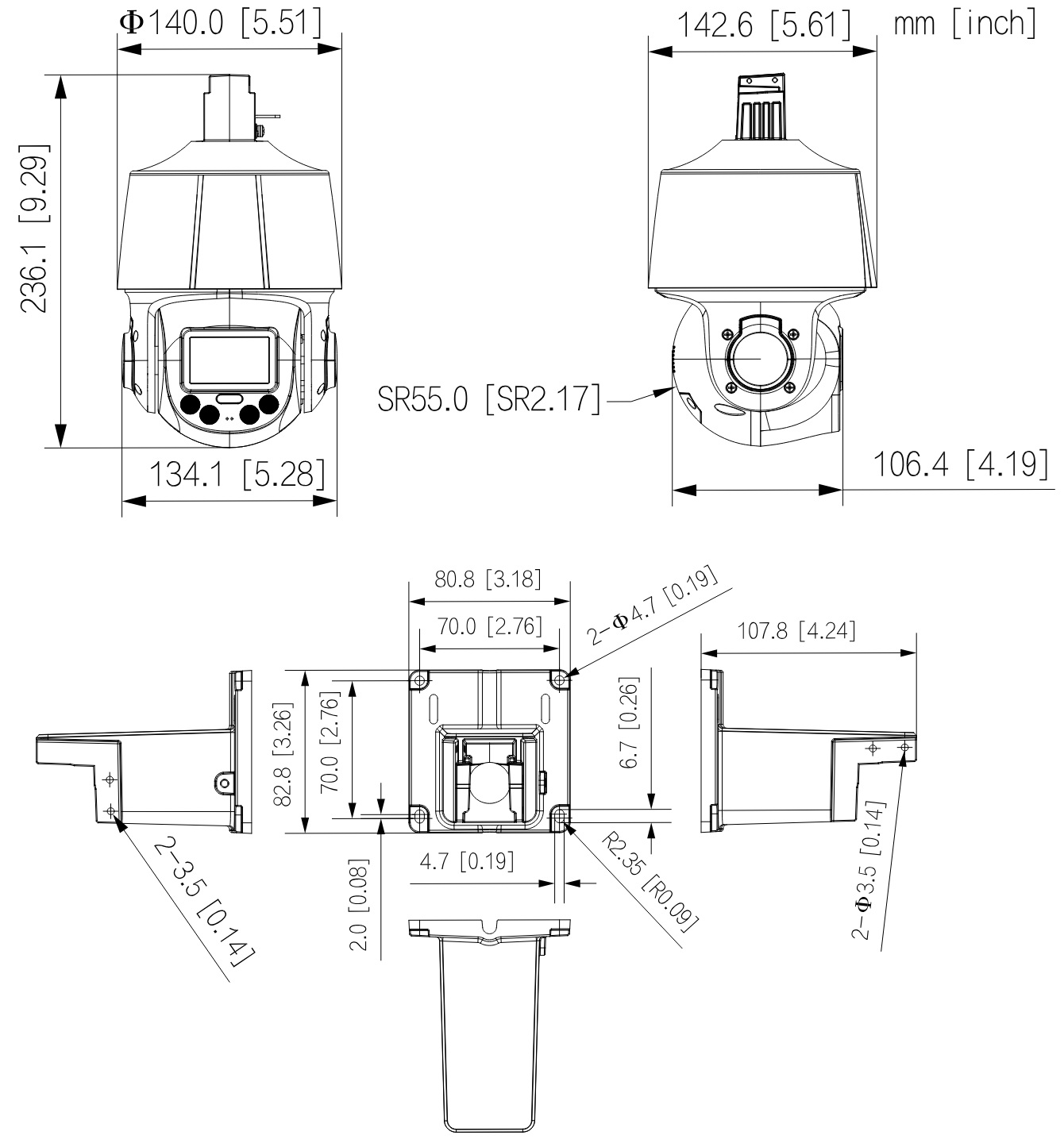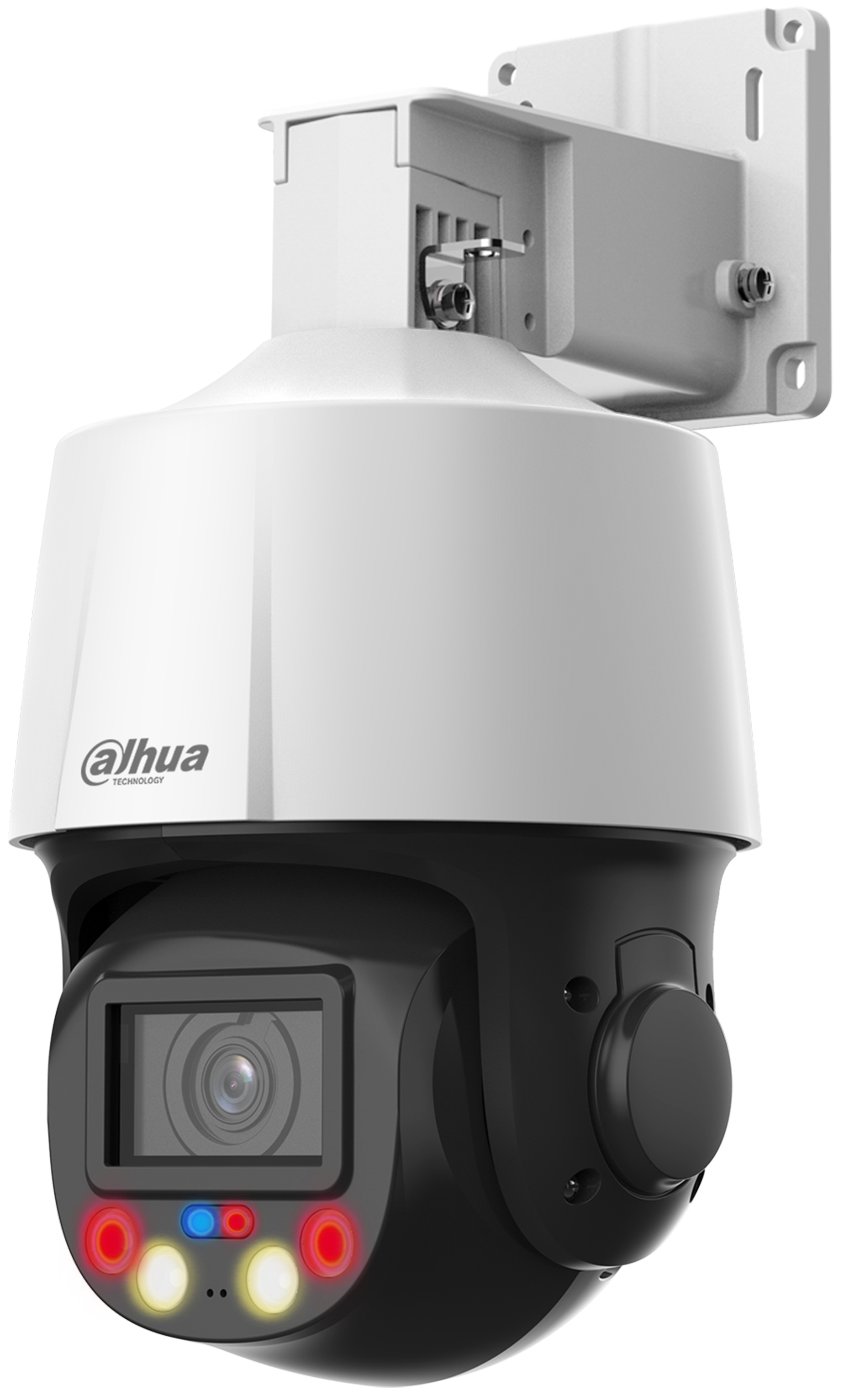 PTZ IP kamera řady WizSense Series, Smart Dual přísvit, IVS (ochrana perimetru); detekce obličeje; automatické sledování Lite; SMD3.0 (detekce osoby a vozidla); aktivní odstrašování; světelná a zvuková výstraha, integrovaný mikrofon a reproduktor (možnost obousměrné audiokomunikace), alarm I/O, slot pro micro SD. Napájení PoE+ nebo 12 VDC.