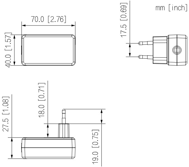 Jednoduchý spínaný zdroj do zásuvky s dvoulinkou zakončený konektorem 12 VDC. Ochrana přepětí, přetížení, zkratu, instalace do zásuvky.