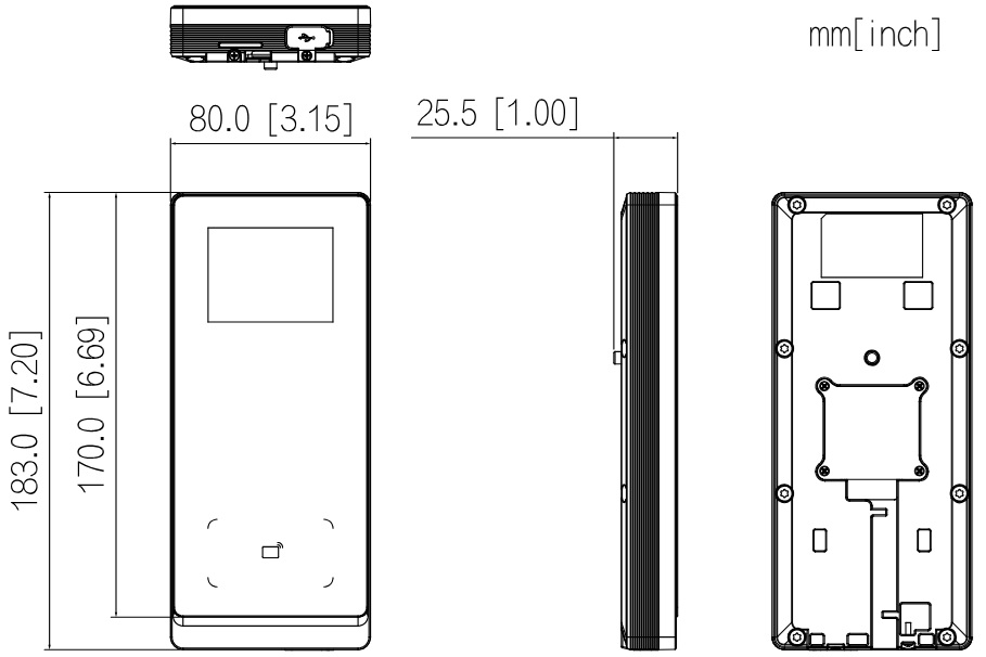Porty: RS-485 1 RS-232 1 Wiegand 1-ch input/output USB 1 × USB2.0 port Network Port 1 × RJ-45, 100 Mbps Alarm Input 2 (digital quantity) Alarm Output 1 (relay) Alarm Linkage Yes Doorbell 1 Exit Button 1 Door Status Detection 1 Lock Control 1
