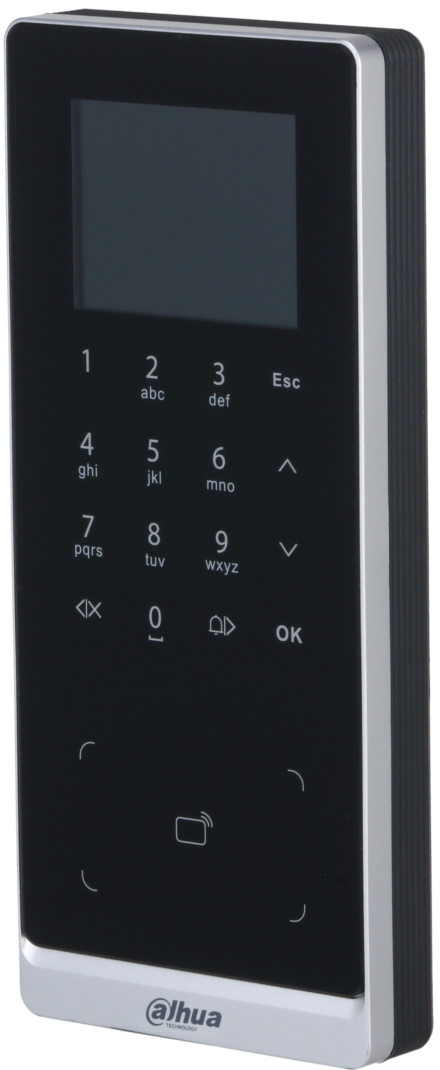 Autonomní čtečka IC karet a NFC technologie s dotykovou klávesnicí a LCD displejem. Možnost připojení druhé externí čtečky přes RS-485 nebo Wiegand port pro řízení obousměrného průchodu. Autorizace uživatele zadáním kódu, přiložením karty/NFC nebo potvrzení karty kódem. Pro obsluhu dveří je možné dále využít vstup pro odchodové tlačítko. Nastavení přes webové rozhraní nebo z programu SmartPSS AC, DSS Pro. Dohled z DMSS. Plastové provedení PC+ABS. Napájení 12 VDC.