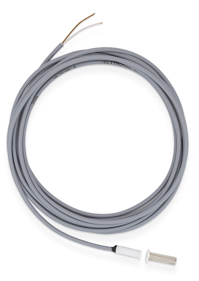 Magnetický kontakt pro systémy MAR, stav zavřeno/otevřeno – sepnuto/rozepnuto, zápustné provedení, rozměry 6 x 20 mm, pracovní vzdálenost 0 - 22 mm.