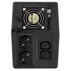 Záložní zdroj UPS iFP 1500 typu line-interactive. Na čelním panelu přehledný LCD dotykový displej pro cyklické zobrazování informací o UPS (výstupní/vstupní napětí, úroveň zatížení, kapacita baterie, přetížení) a vypínač ON/OFF.