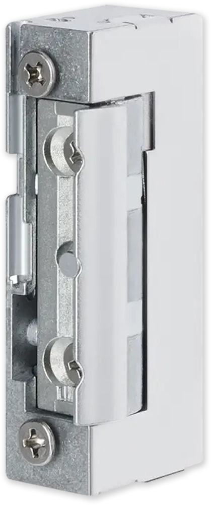 Elektromagnetický el. zámek Assa Abloy řady effeff, který propouští přes horní západku běžného zámku a montuje se do zárubní dveří. Po přivedení napěťového impulzu odemčeno, zámek zůstává odemčený do okamžiku otevření dveří, při jejich opětovném zavření jsou dveře blokovány.