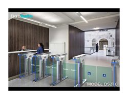 Vysokorychlostní brána DS218 s pouzdrem o průměru 120 mm je elegantní a štíhlé řešení pro kontrolu přístupu. Boční panely z bílého tvrzeného skla s oslnivým LED světlem, které jsou atraktivnější a působivější, snadno upoutají oči chodců a umocní uměleckost míst. Je ideální pro vnitřní i venkovní použití. Super tenká skříň: pouze 120 mm, poskytuje atmosférický vizuální efekt. Bílé tvrzené sklo na skříni je ohromující červeným, zeleným a modrým osvětlením.