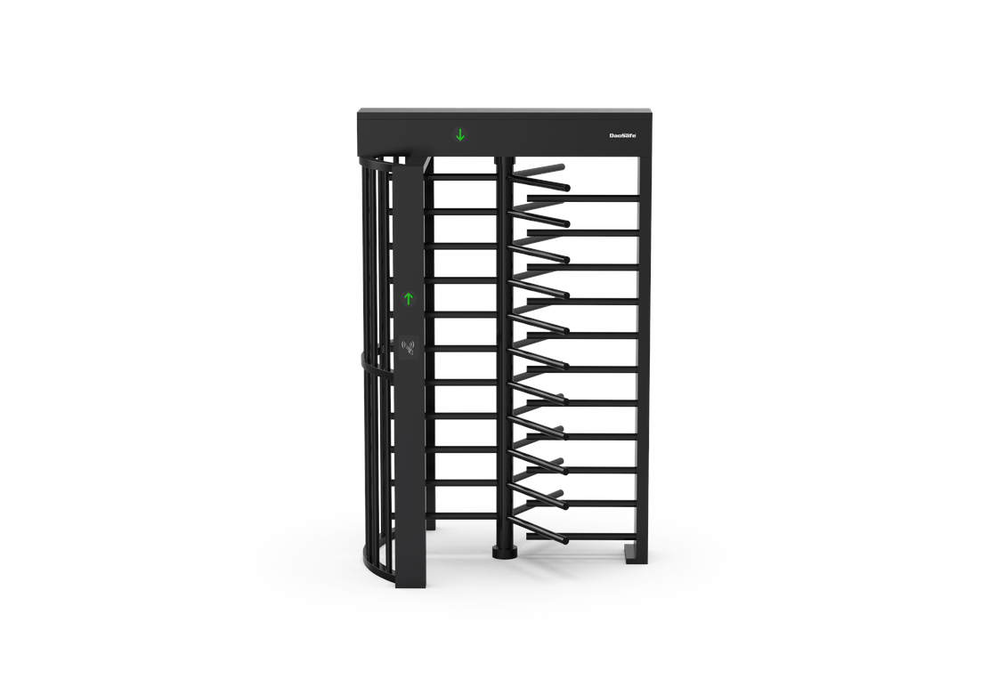Turniket DS411B s plnou výškou je navržen tak, aby poskytoval řešení kontroly přístupu na místech, kde je vyžadována zvýšená bezpečnost, jako jsou věznice, stadiony a staveniště. Systém má ovládání jednodveřového, jednosměrného/obousměrného průchodu. Je ideální pro vnitřní i venkovní použití, protože celé tělo je vyrobeno z kartáčované nerezové oceli, která je vodotěsná, odolná proti korozi a tuhá. K dispozici je dostatečný prostor pro instalaci přístupových zařízení (např. RFID, zařízení na otisk prstu, displej, počítadlo, tlačítko, mincovní vložka, čtečka čárových kódů/QR). Na horním krytu i po stranách karoserie jsou LED světla, která indikují přijetí nebo odmítnutí vstupu. Páka je k dispozici s možností výběru ze 120° nebo 90° rotorů.