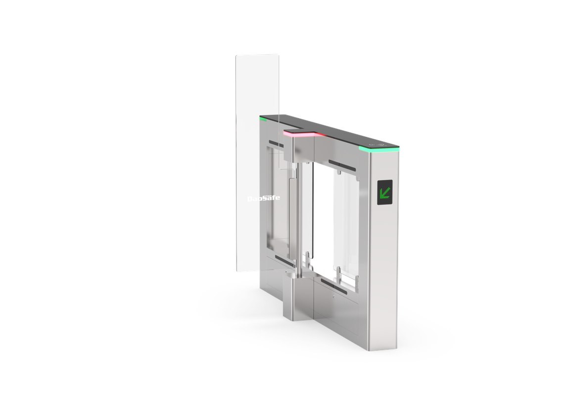 Daosafe dao_DS6000H_R vnitřní pravá rychlostní brána. V případě nouzového signálu zajišťuje volný průchod.