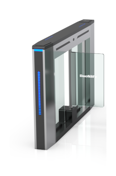 Daosafe dao_DSN 20_L venkovní levá rychlostní brána. V případě nouzového signálu zajišťuje volný průchod.